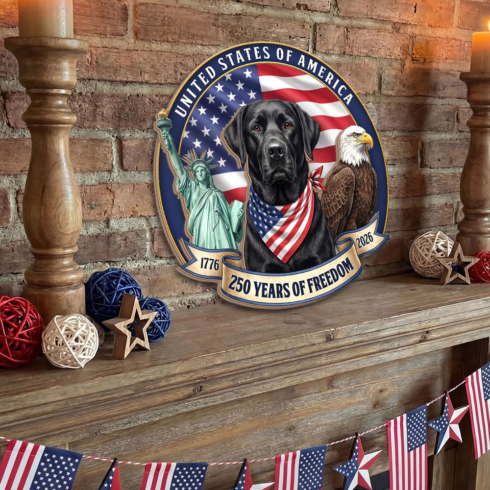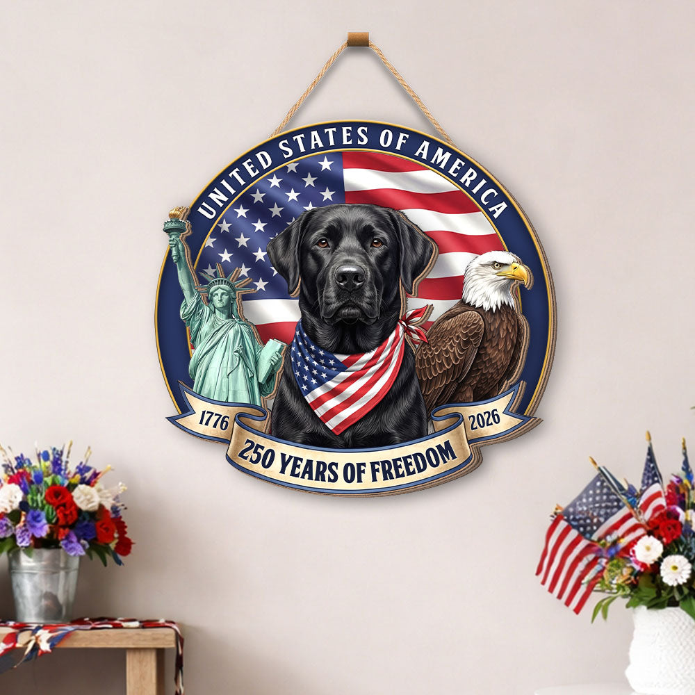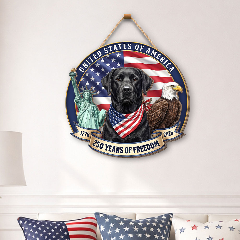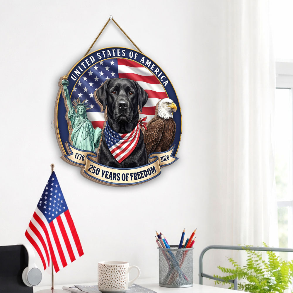Patriotic Labrador Retriever Hanging Sign, 250 Years Wooden Decor for Dog Lovers