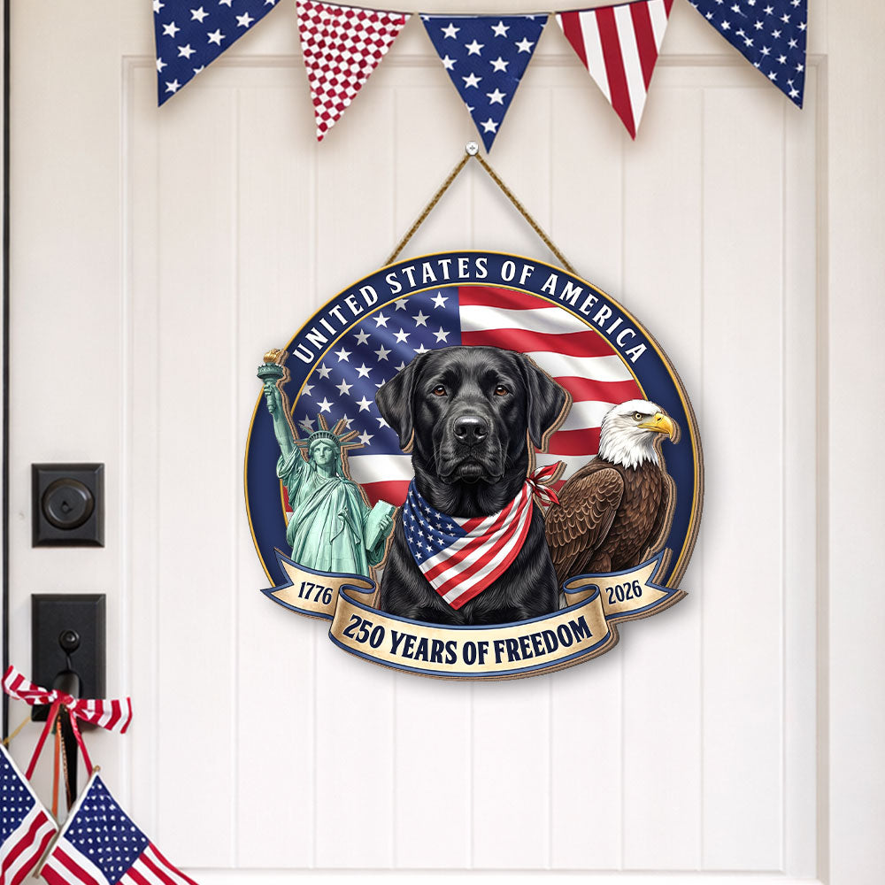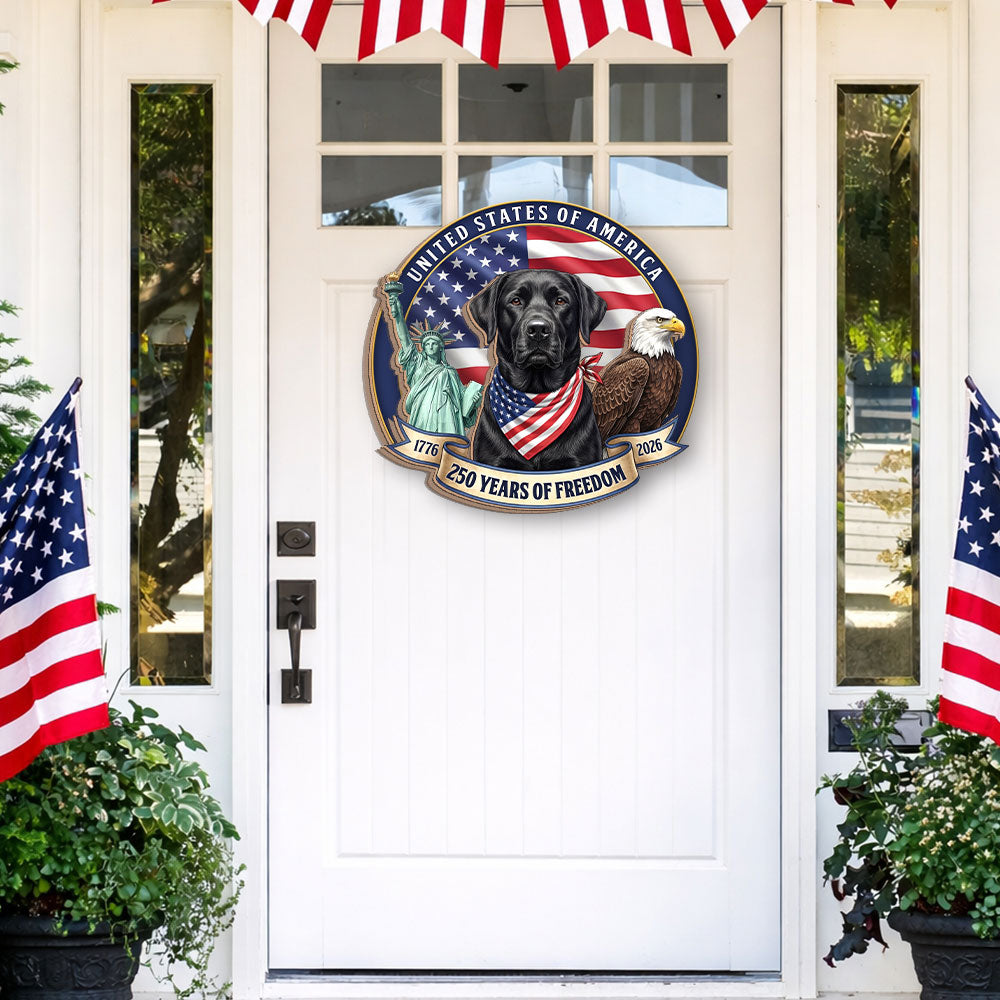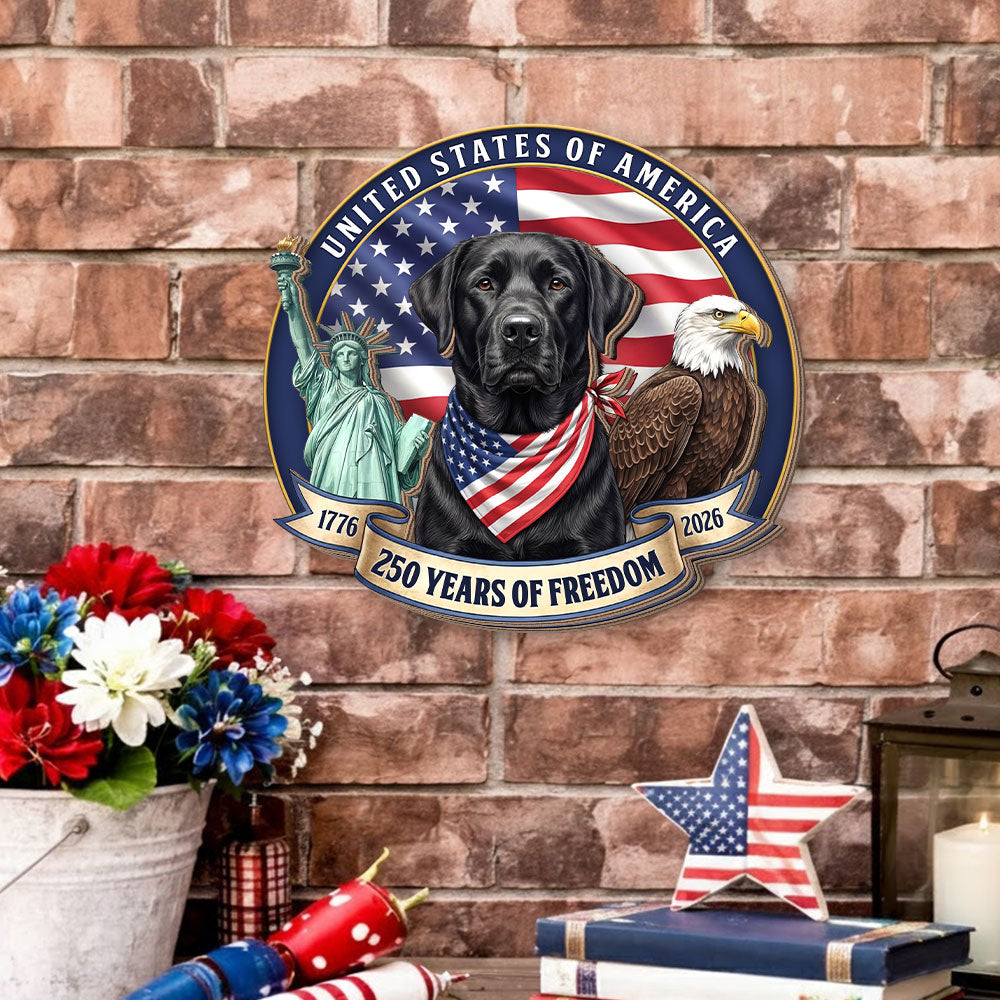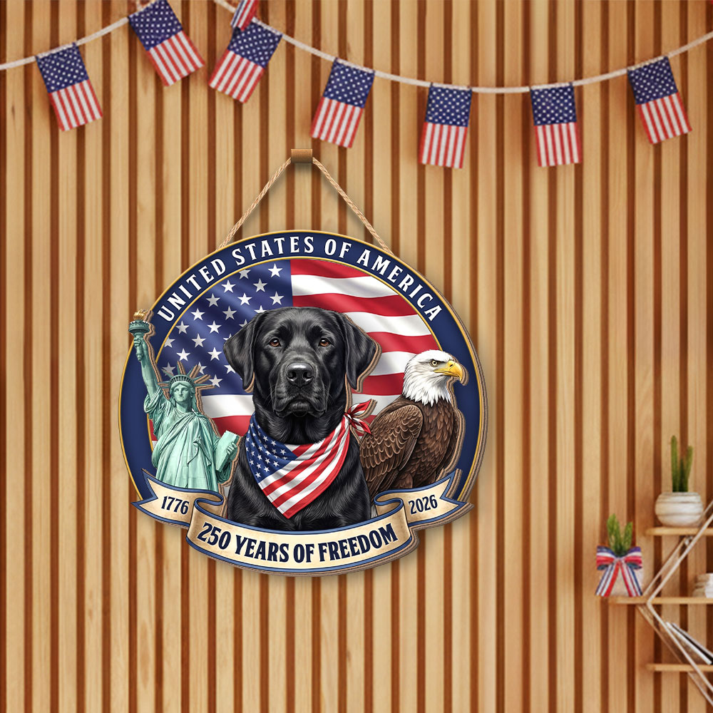 Patriotic Labrador Retriever Hanging Sign, 250 Years Wooden Decor for Dog Lovers