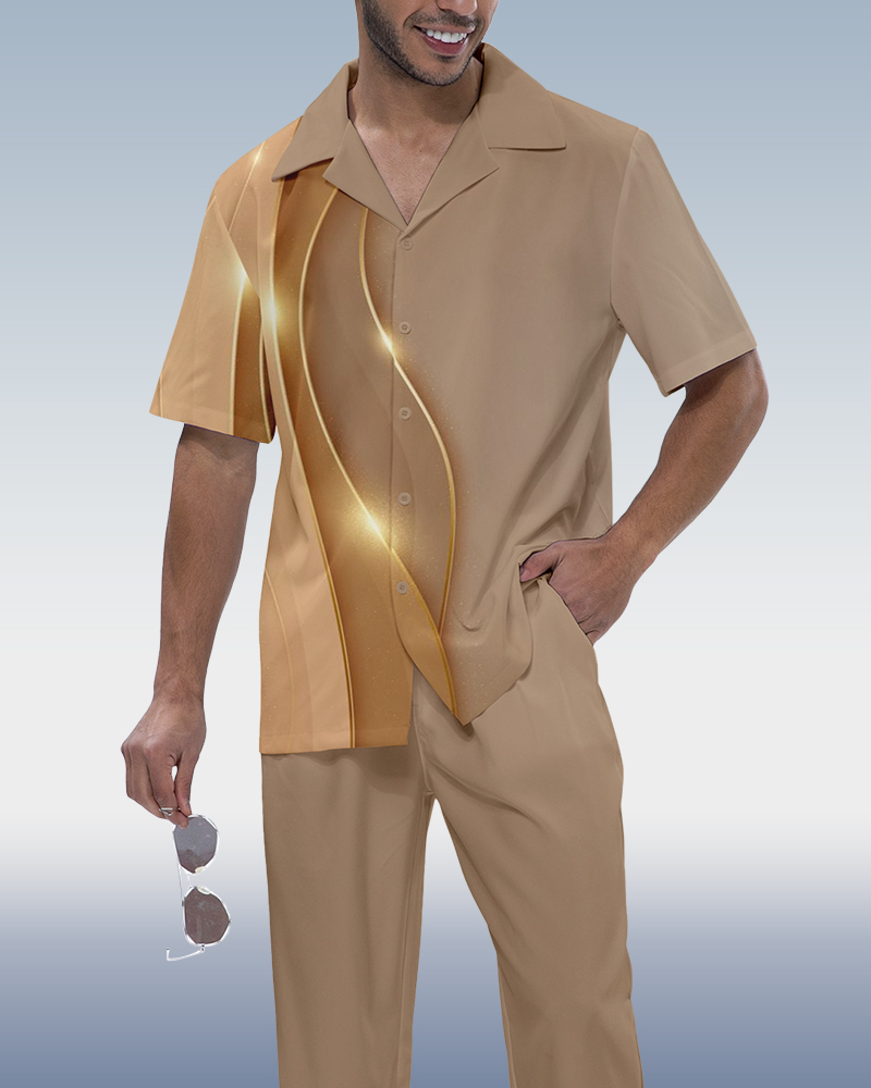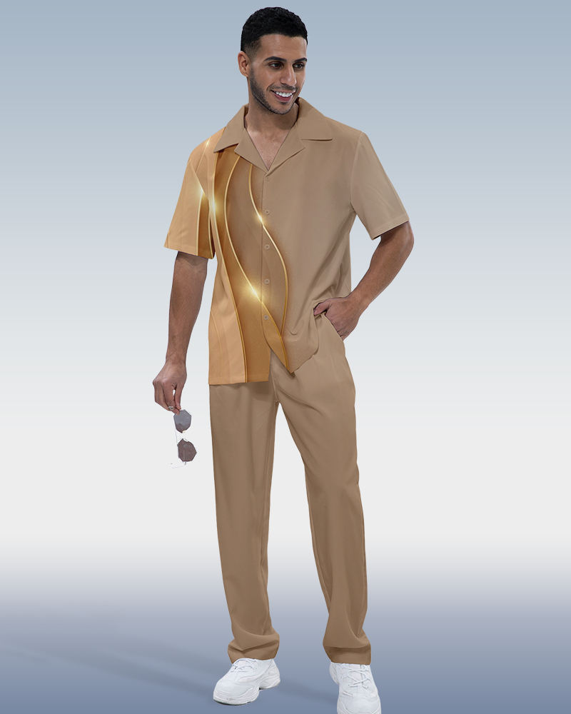 Suitmens Men's Ombre Print Short Sleeve Shirt Walking Set 464
