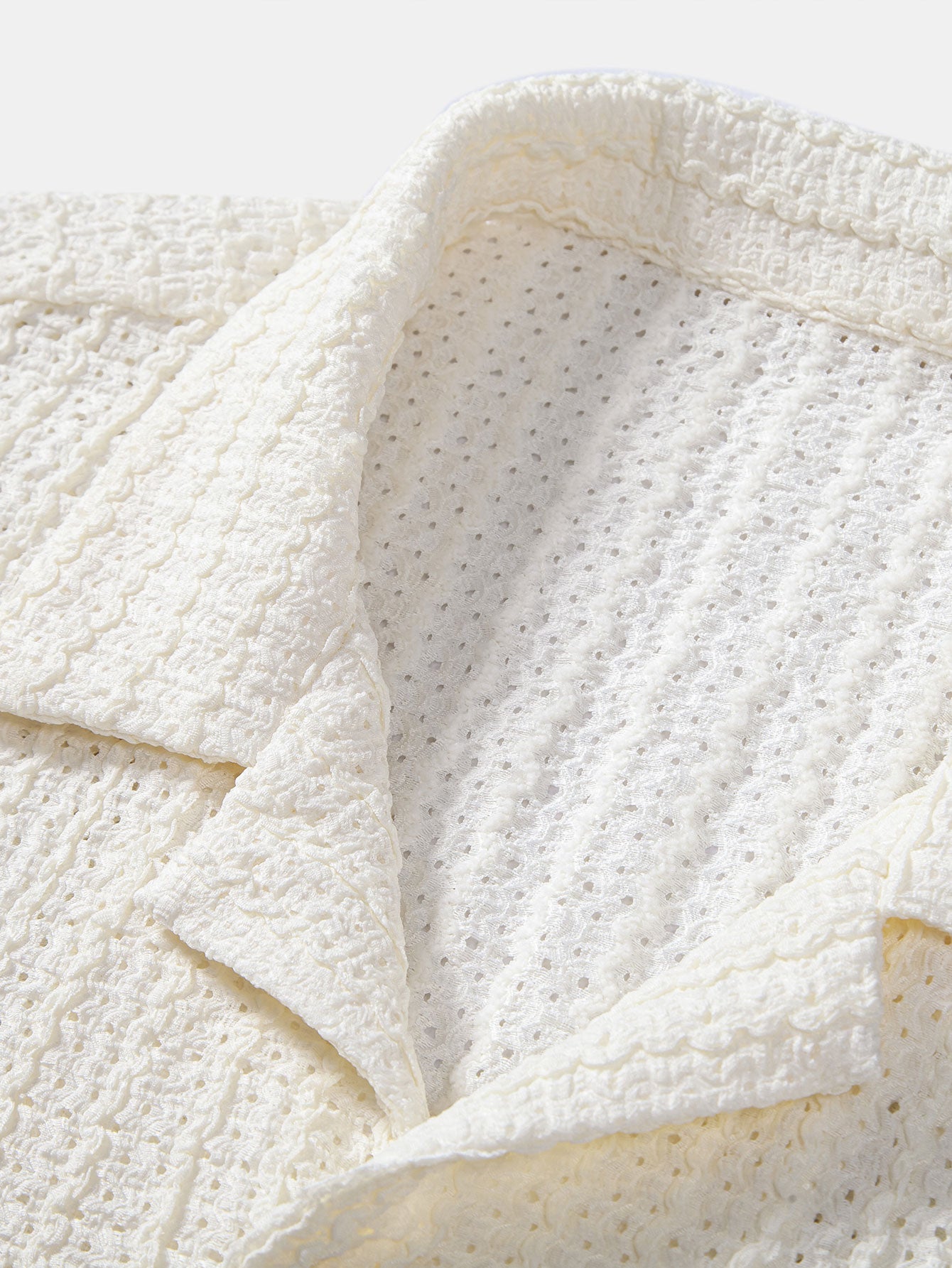 Texture Jacquard Cuban Shirt & Straight Leg Linen Pants