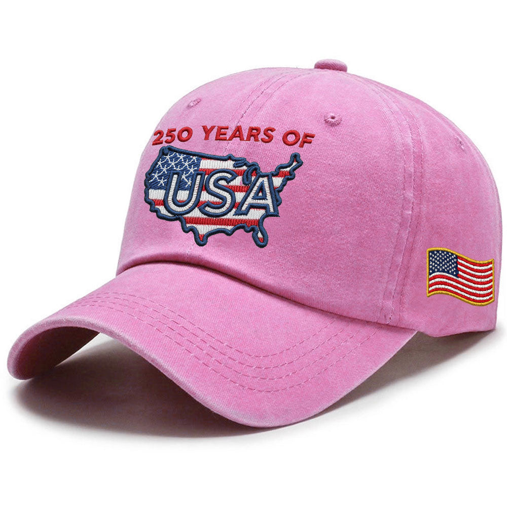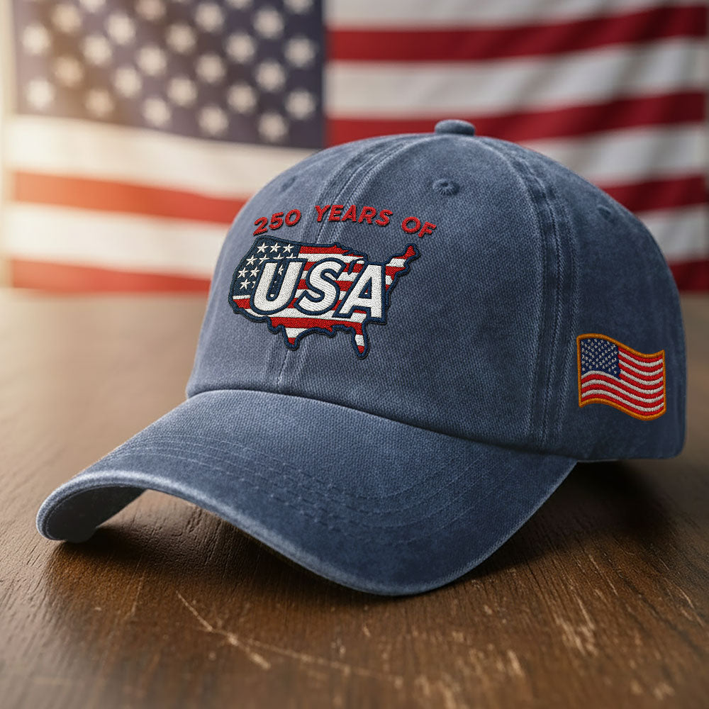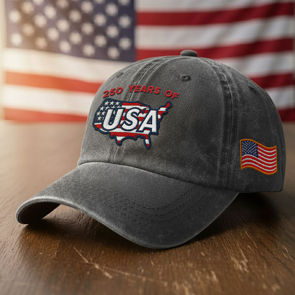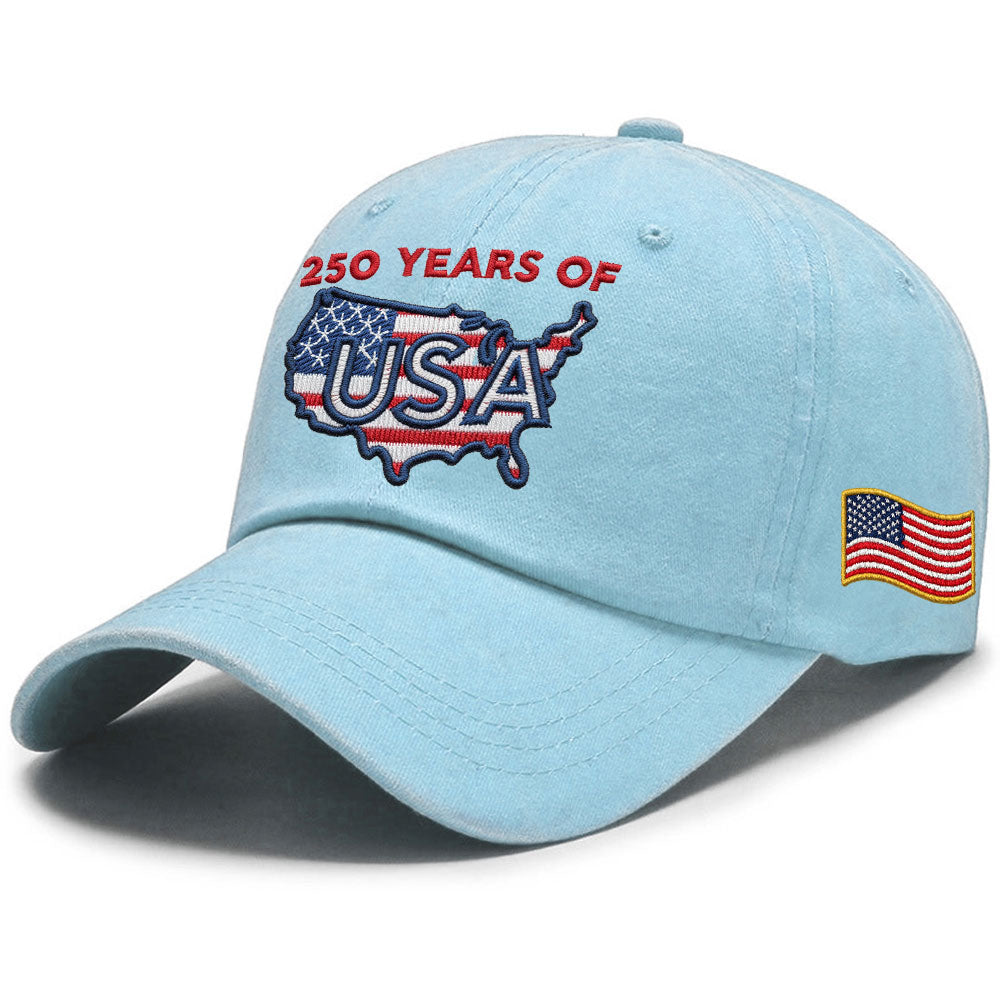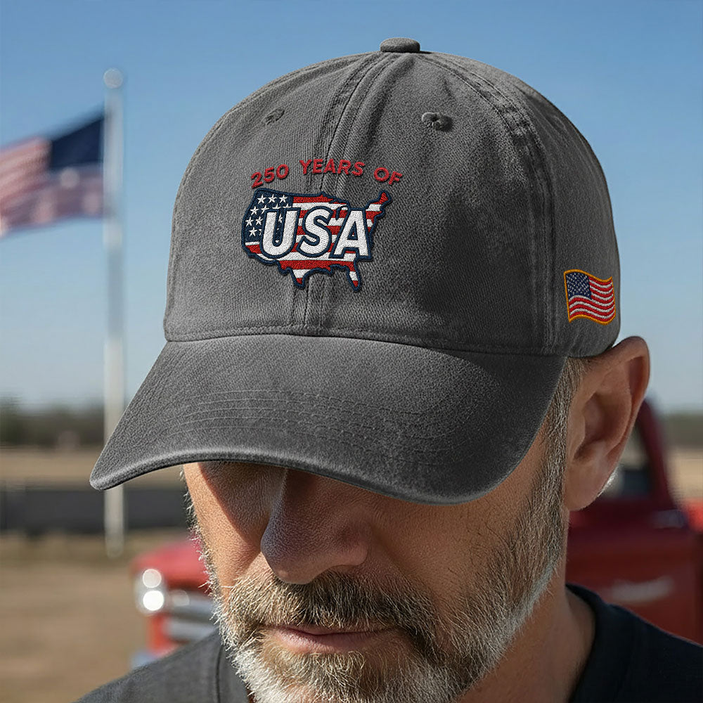 250 Years of USA Washed Cap | Patriotic Embroidered American Flag Cap