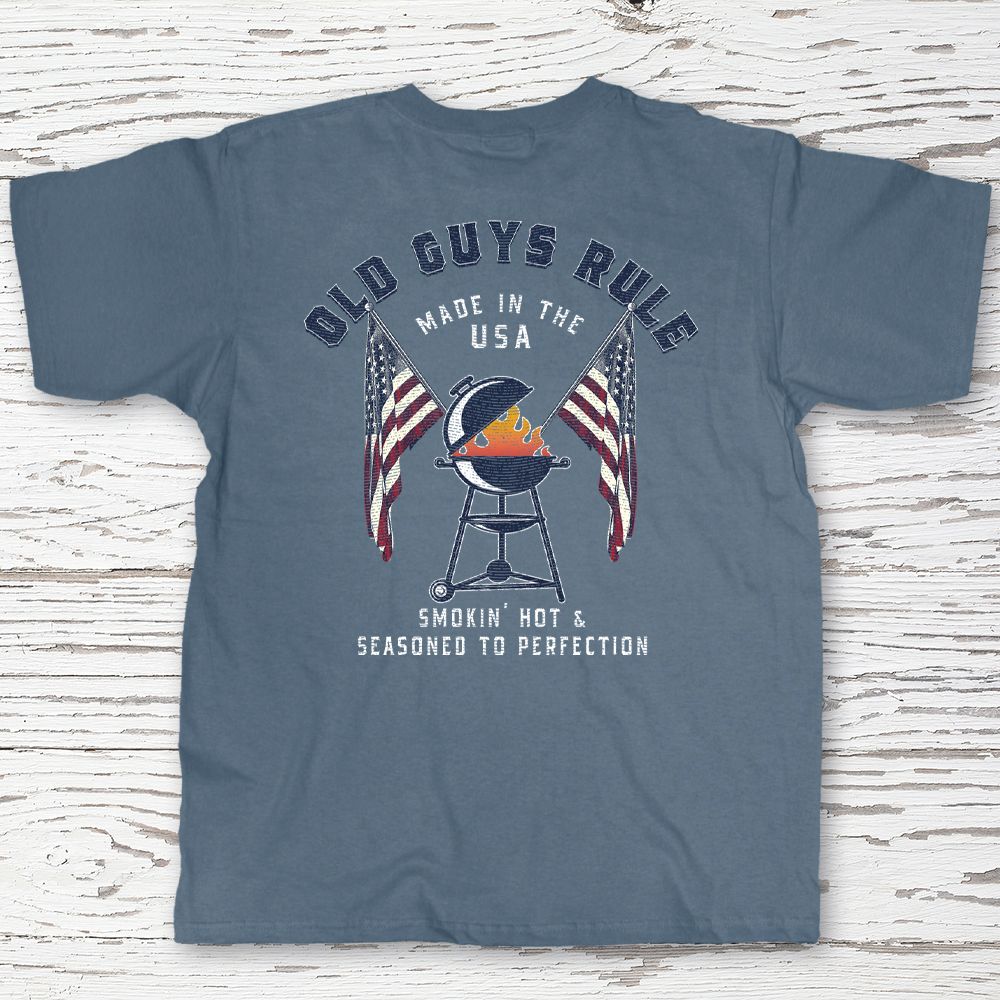 | Shirt Text: Old Guys Rule - Made In The USA - Smokin' Hot & Seasoned To Perfection |