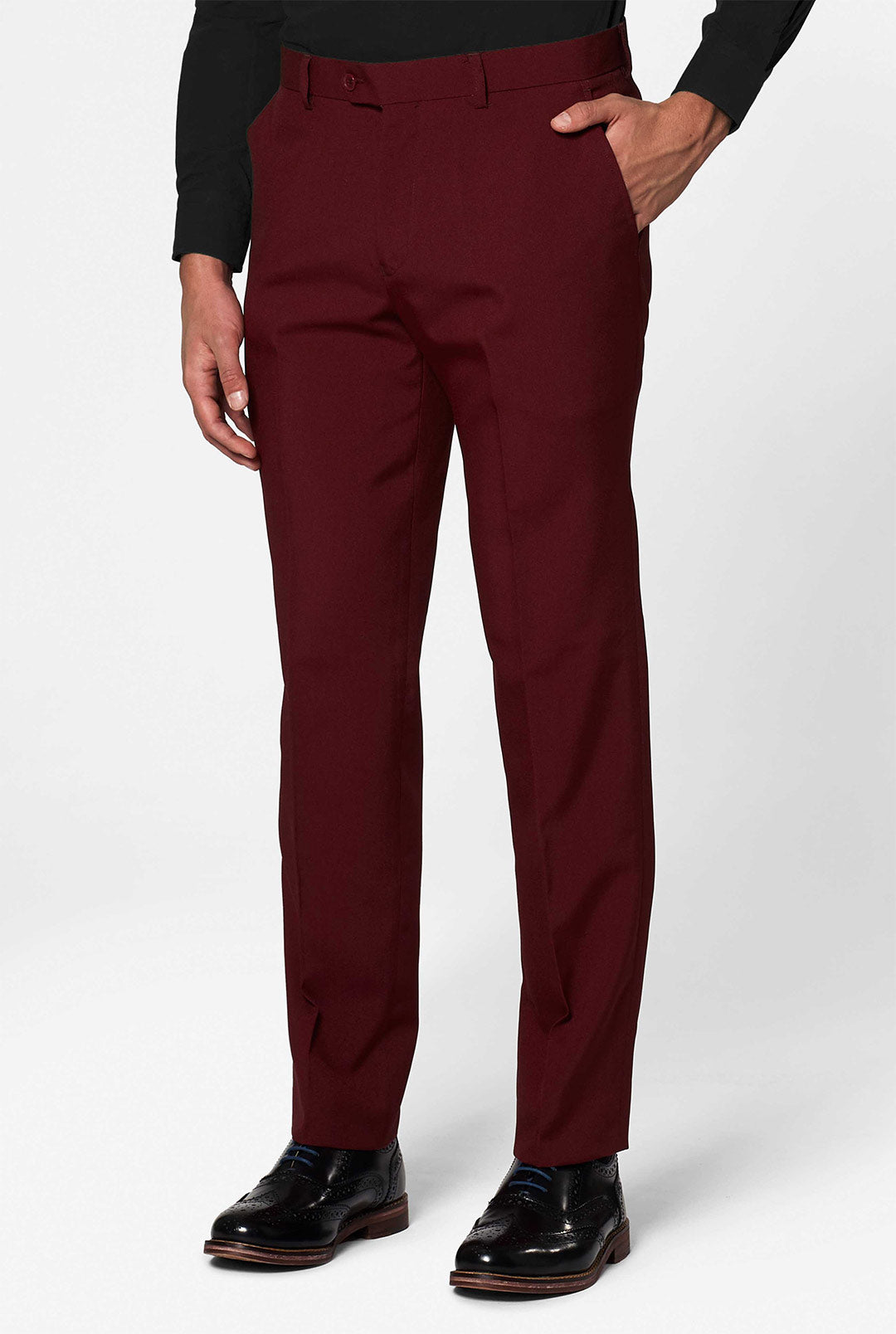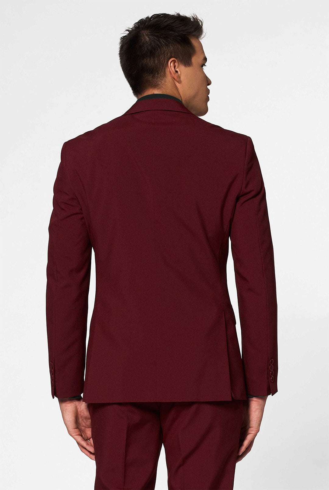 It's attitude and nonchalant coolness all the way when it comes to this solid burgundy suit. It adds bold color and contemporary appeal to your wardrobe and is bound to get you noticed. Let's make every occasion as extraordinary as you are with this burgundy red ensemble!