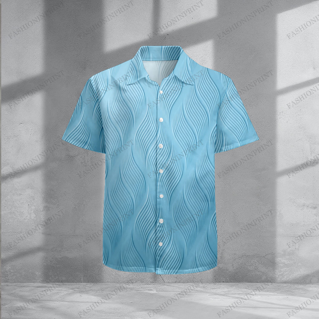 Men's Casual Blue Geometric Print Short-Sleeve Shirt