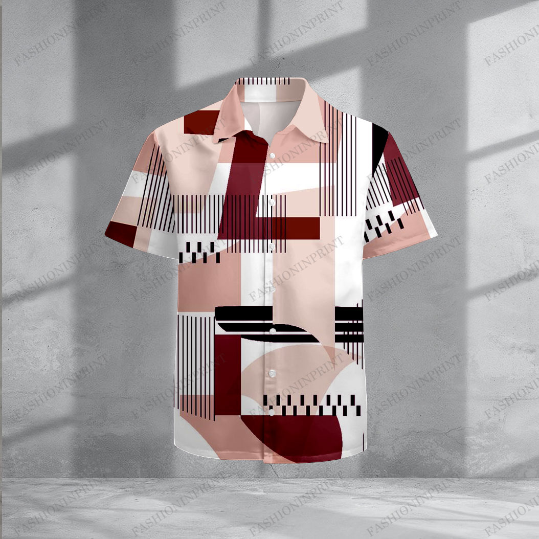 Men's Casual Red & Pink & White Color Matching Geometric Print Short-Sleeve Shirt