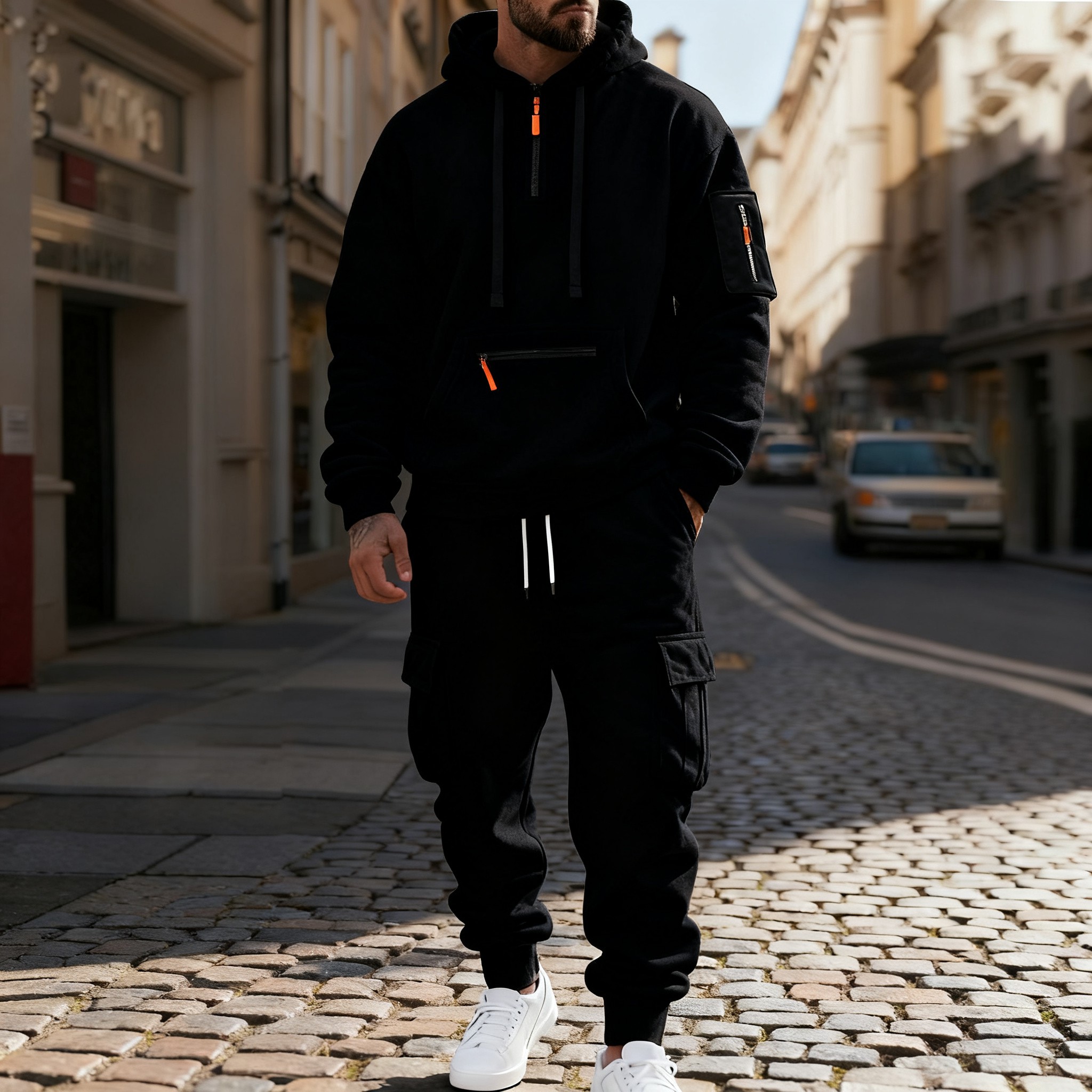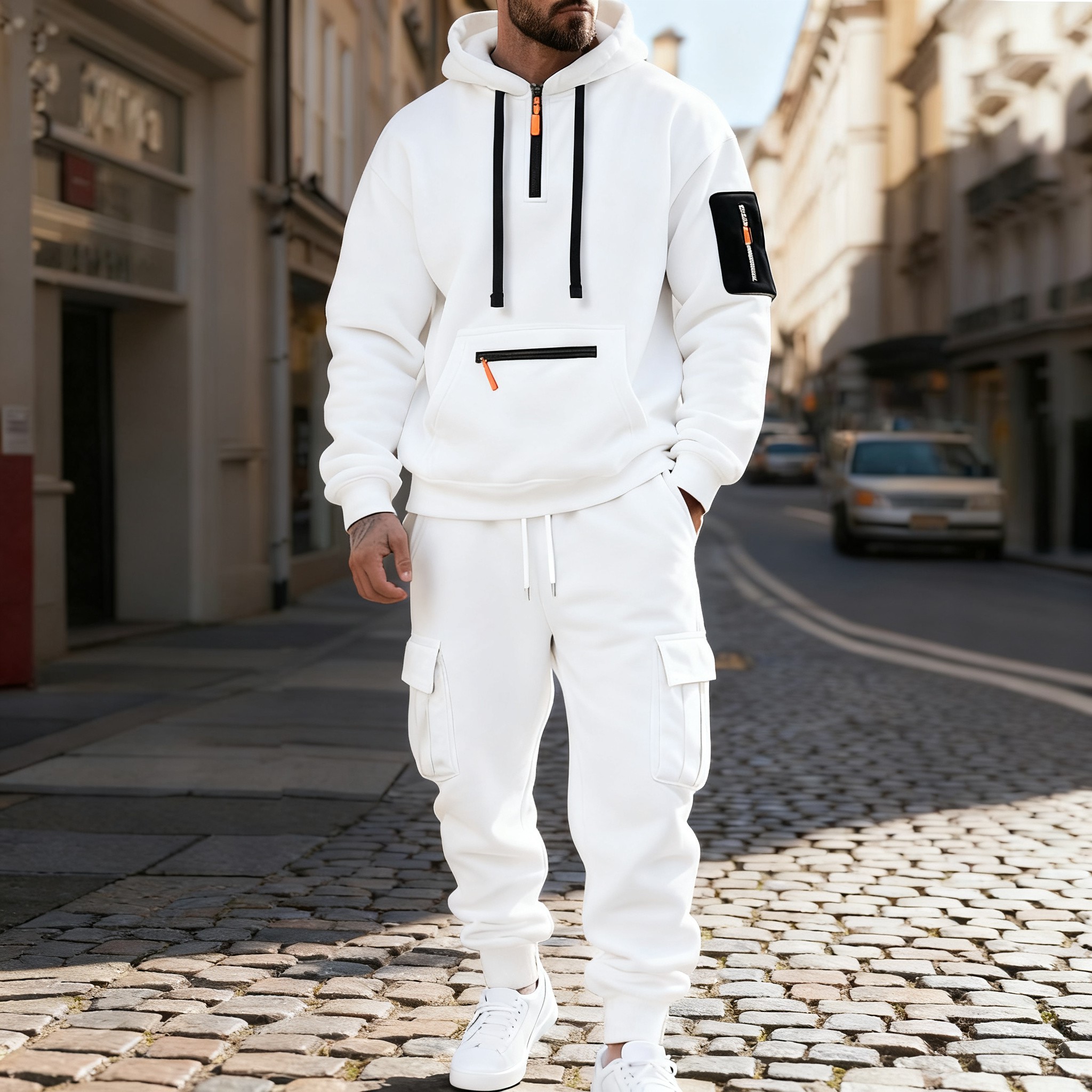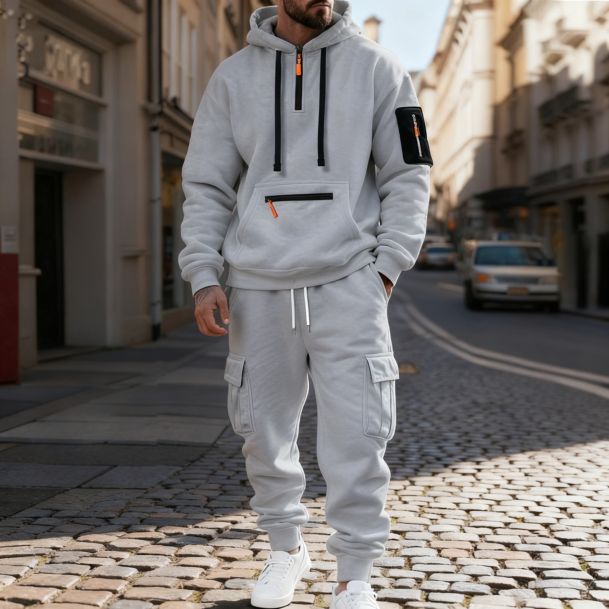 Men's Casual Color Matching Printed Hoodies Long Sleeved Sweatshirts Trousers Pocket Two-Piece Set