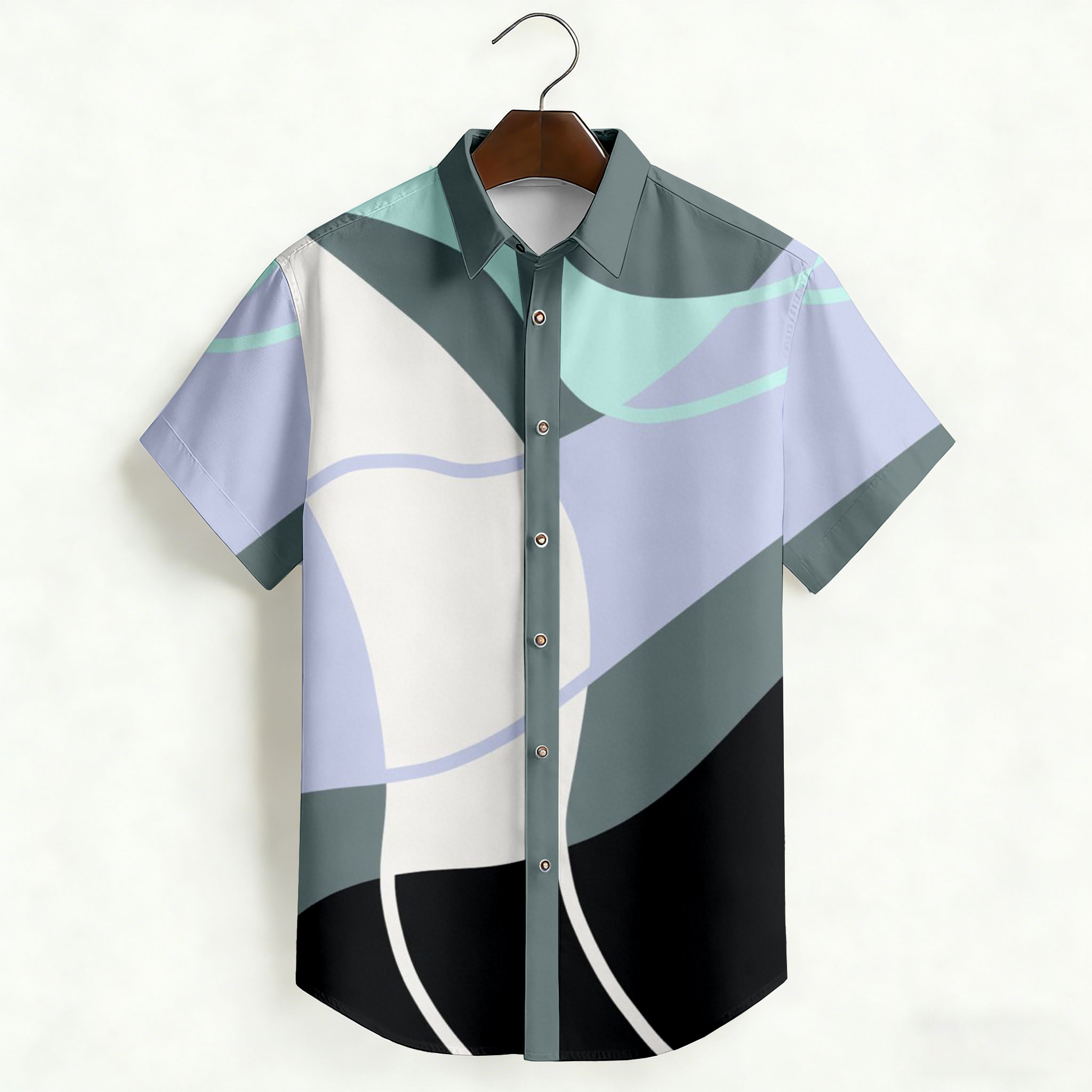Men's Casual Multi Green Color Matching Geometric Print Short-Sleeve Shirt