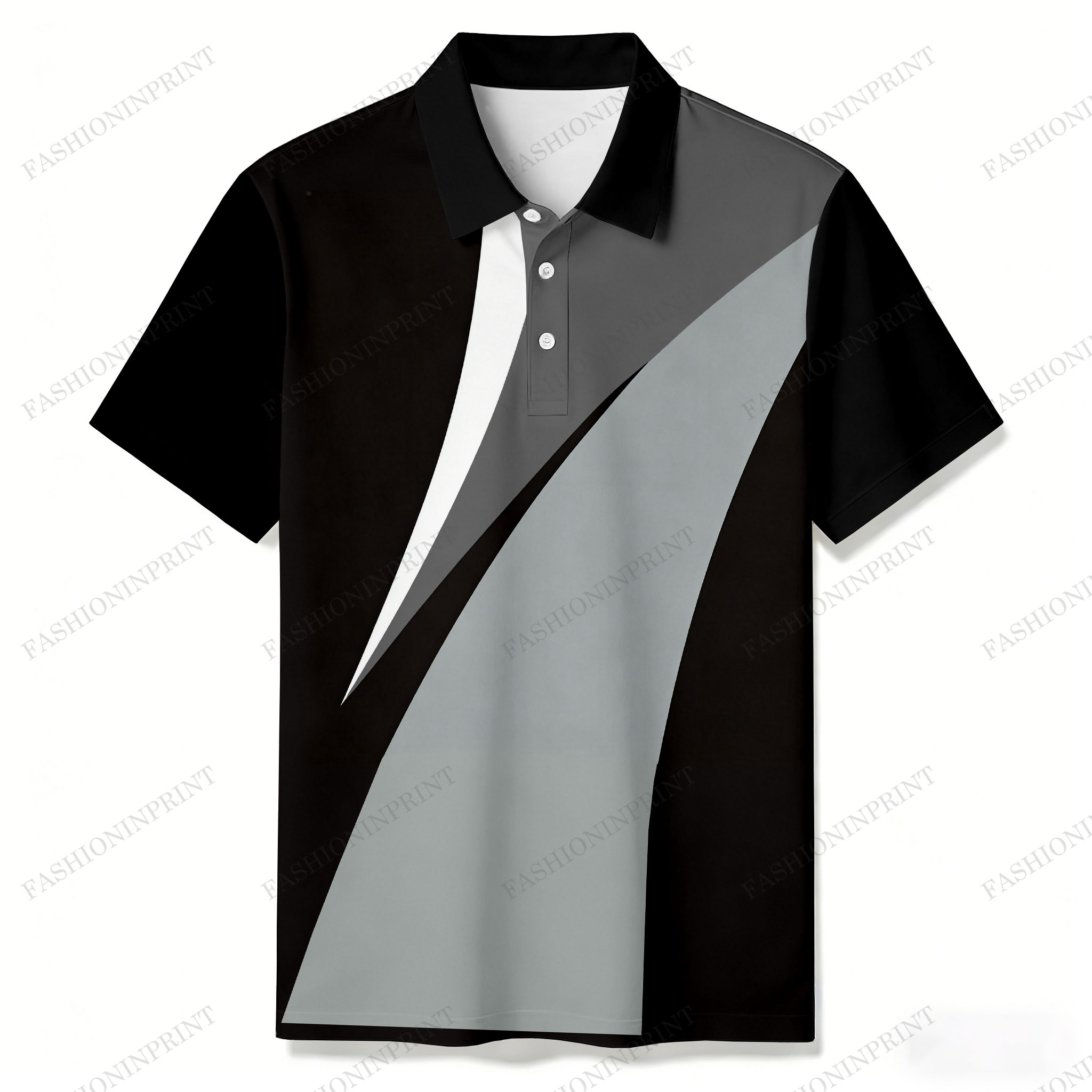 Men's Casual Black & Gray Geometry Short-Sleeve Shirt