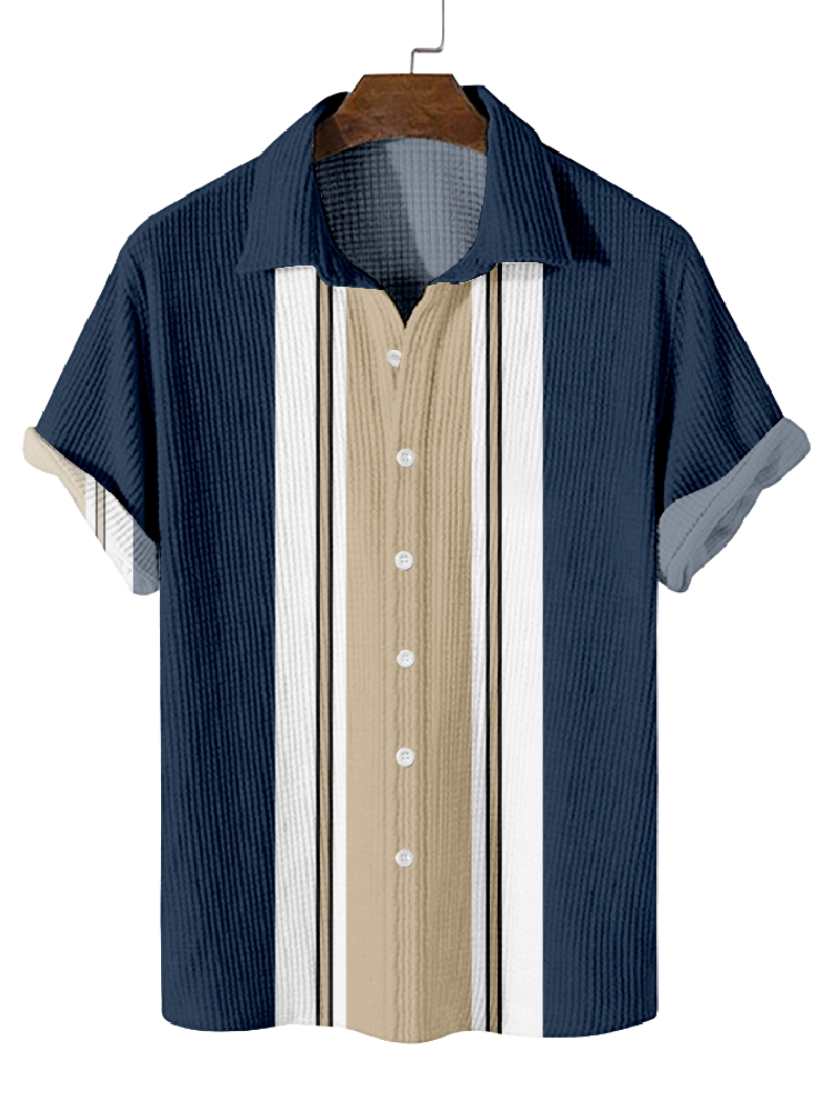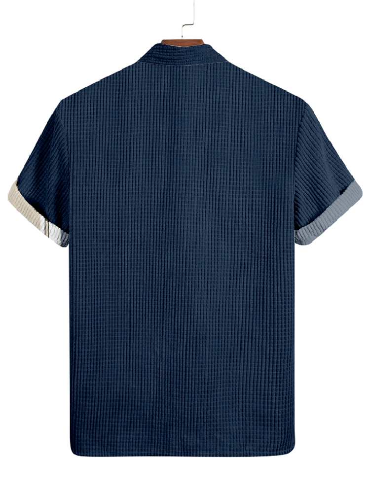 Men's Classic Textured Striped Short-Sleeved Shirt 0734