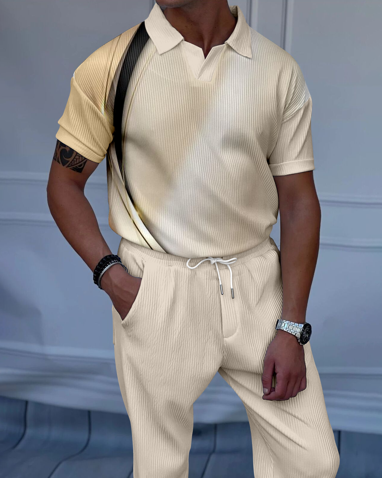 Men's Luxury Casual Textured Polo Short Sleeve Suit - 042