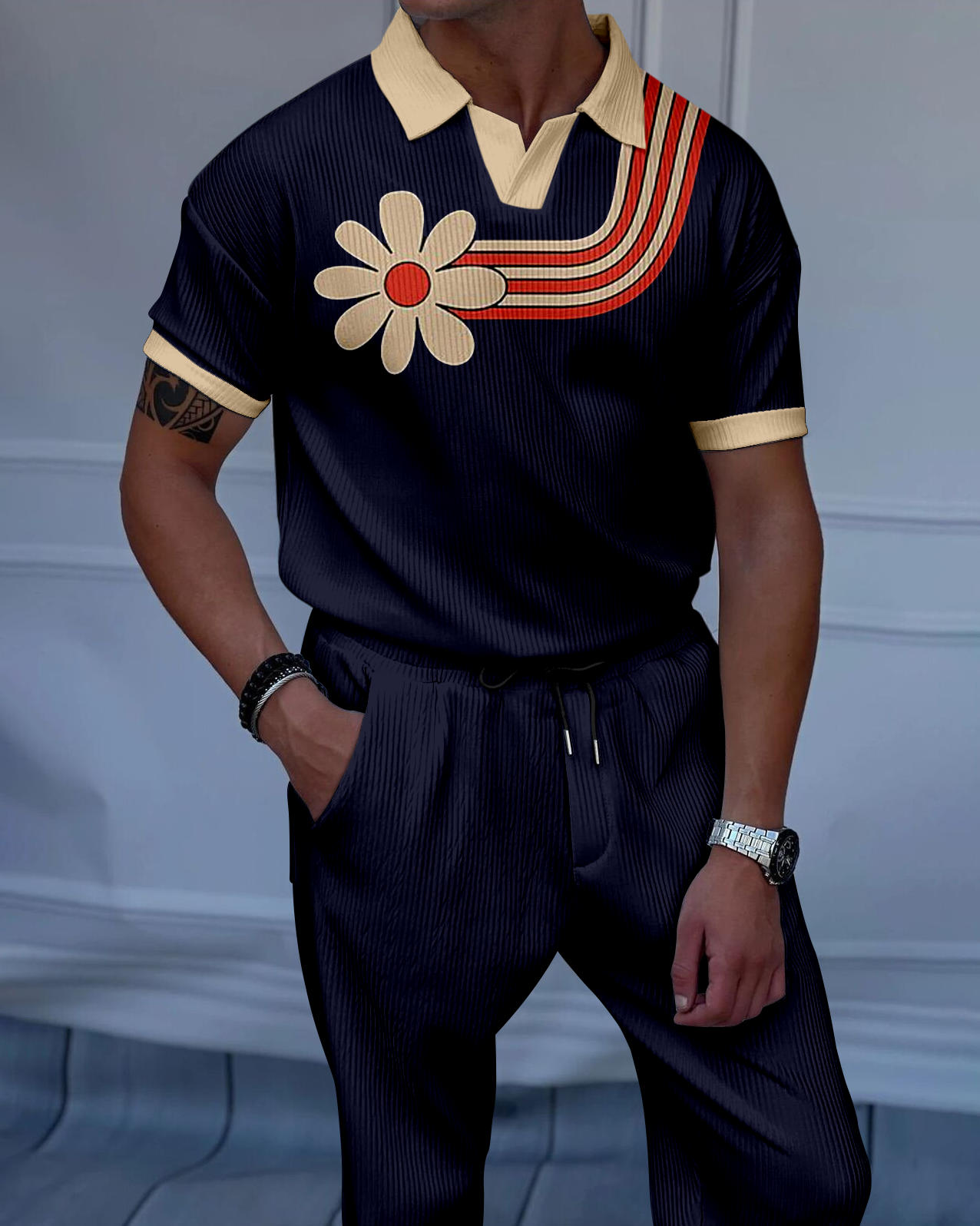 Men's Luxury Casual Textured Polo Short Sleeve Suit - 069