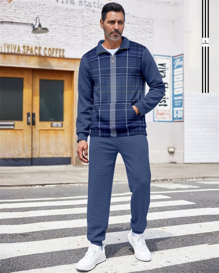 Men's Quarter Zipper Checked Jacquard Jogging Set 018