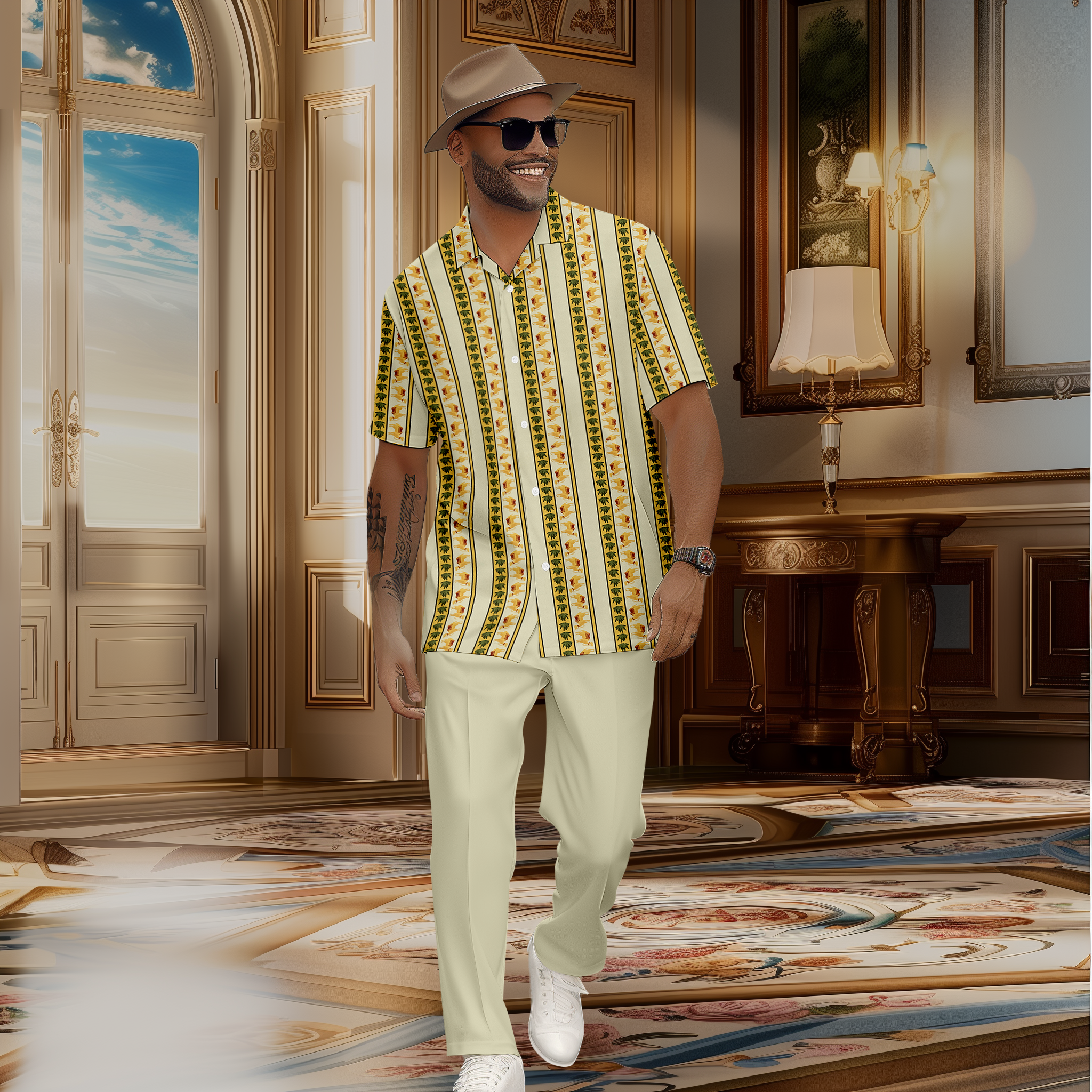 Men's Retro Luxury Short Sleeve Shirt Walking Suit 1126