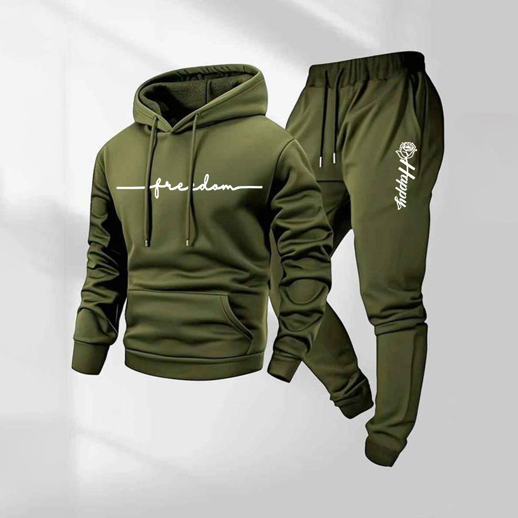 Men's Printed Hoodie & Drawstring Sweatpants Set