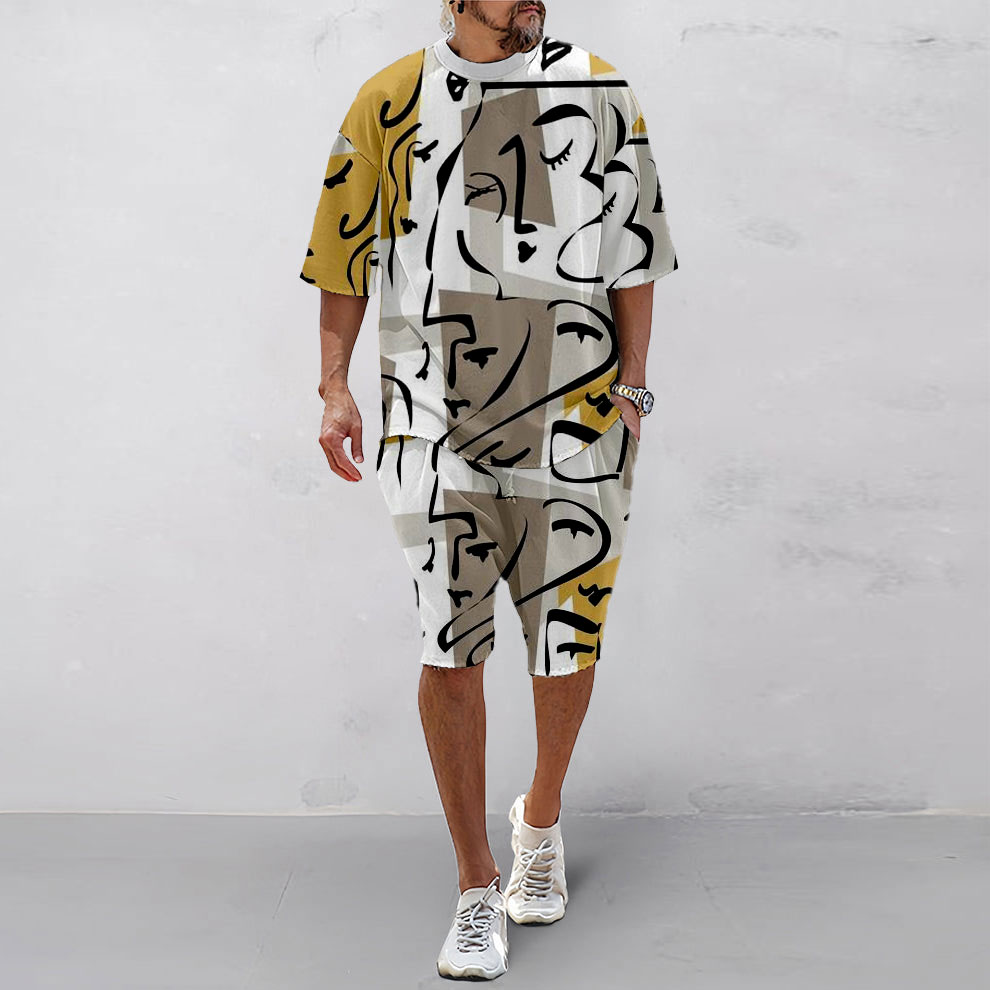 Men's Styles Casual Color Matching Printed Short-Sleeved Two-Piece Set