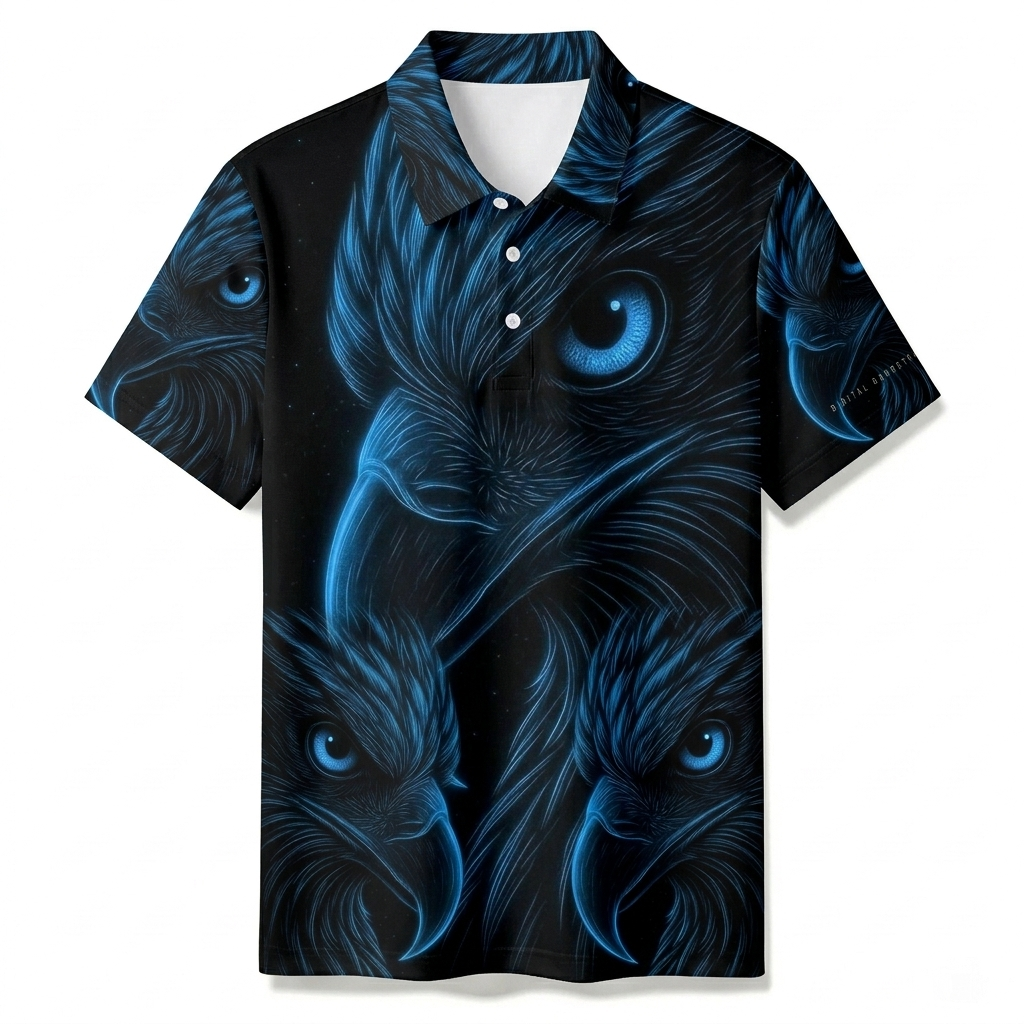 Men's Summer Fashion Royal Blue Eagle Printed Polo Short-Sleeve