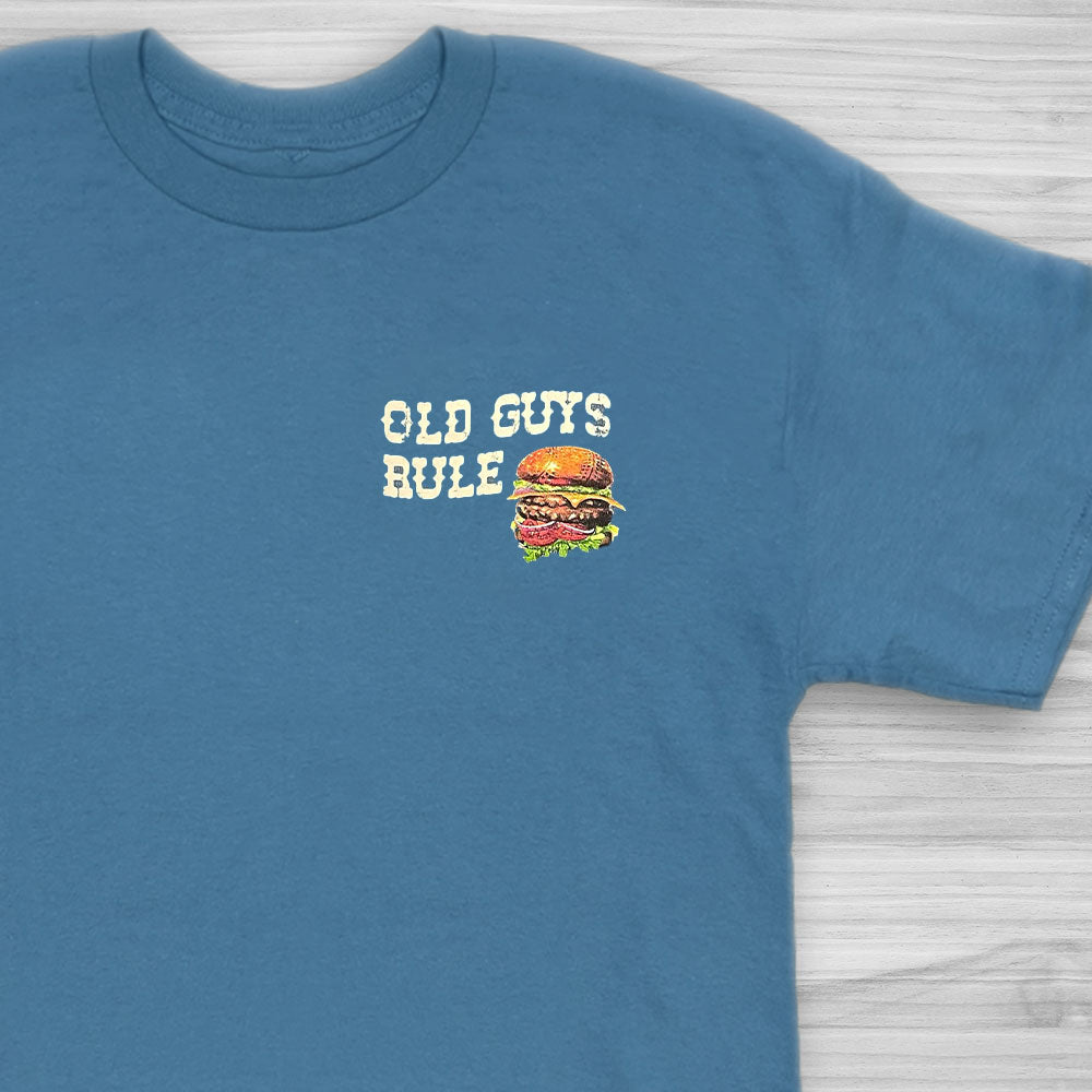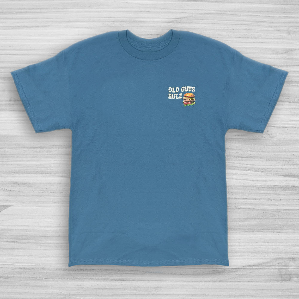 | Front Design: Retrostyle Old Guys Rule "Hamburger Logo" on left chest. |