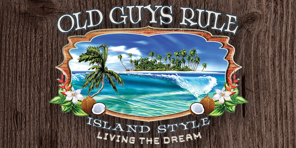 | Shirt Text: "Old Guys Rule - Island Style - Living The Dream" |