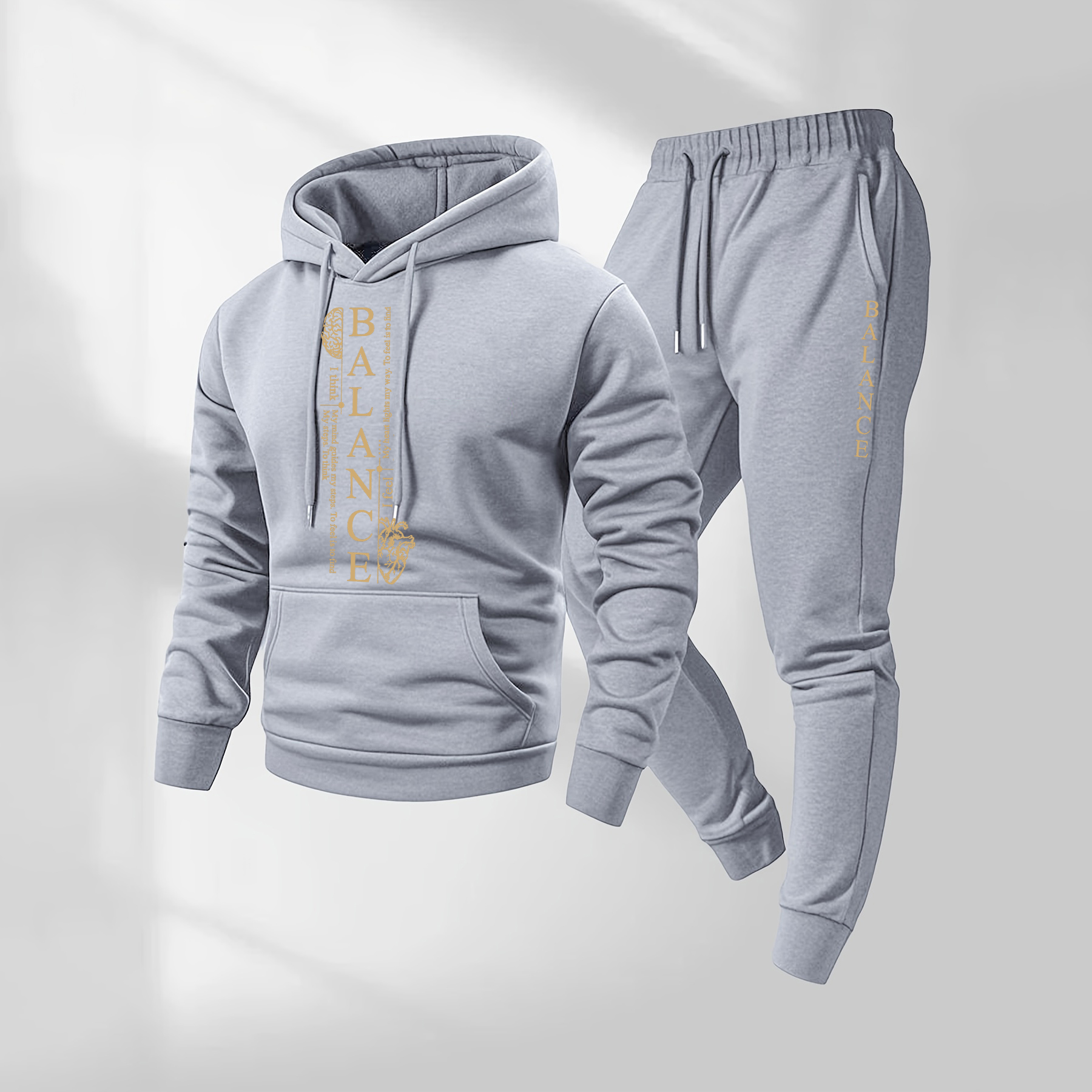 Men's Balance Letter Pattern Print Hoodie and Drawstring Sweatpants Set, Menswear, Casual Athletic Long Sleeve Hooded Jacket & Trousers for Fall & Winter, Men's Clothing for Daily Wear, Sportswear Indoor Outdoor, Tracksuit, Athleisure