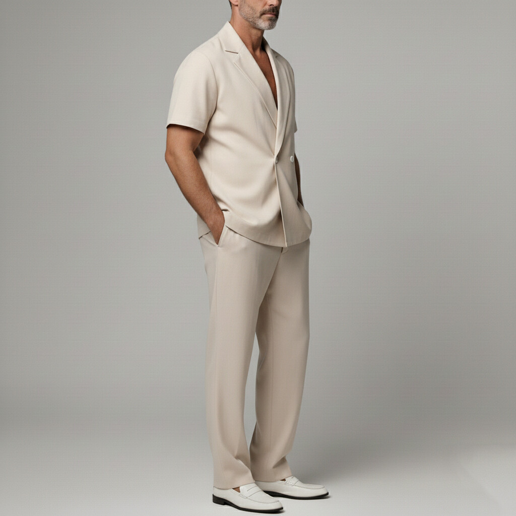 Details: Short Sleeve, Double Breasted