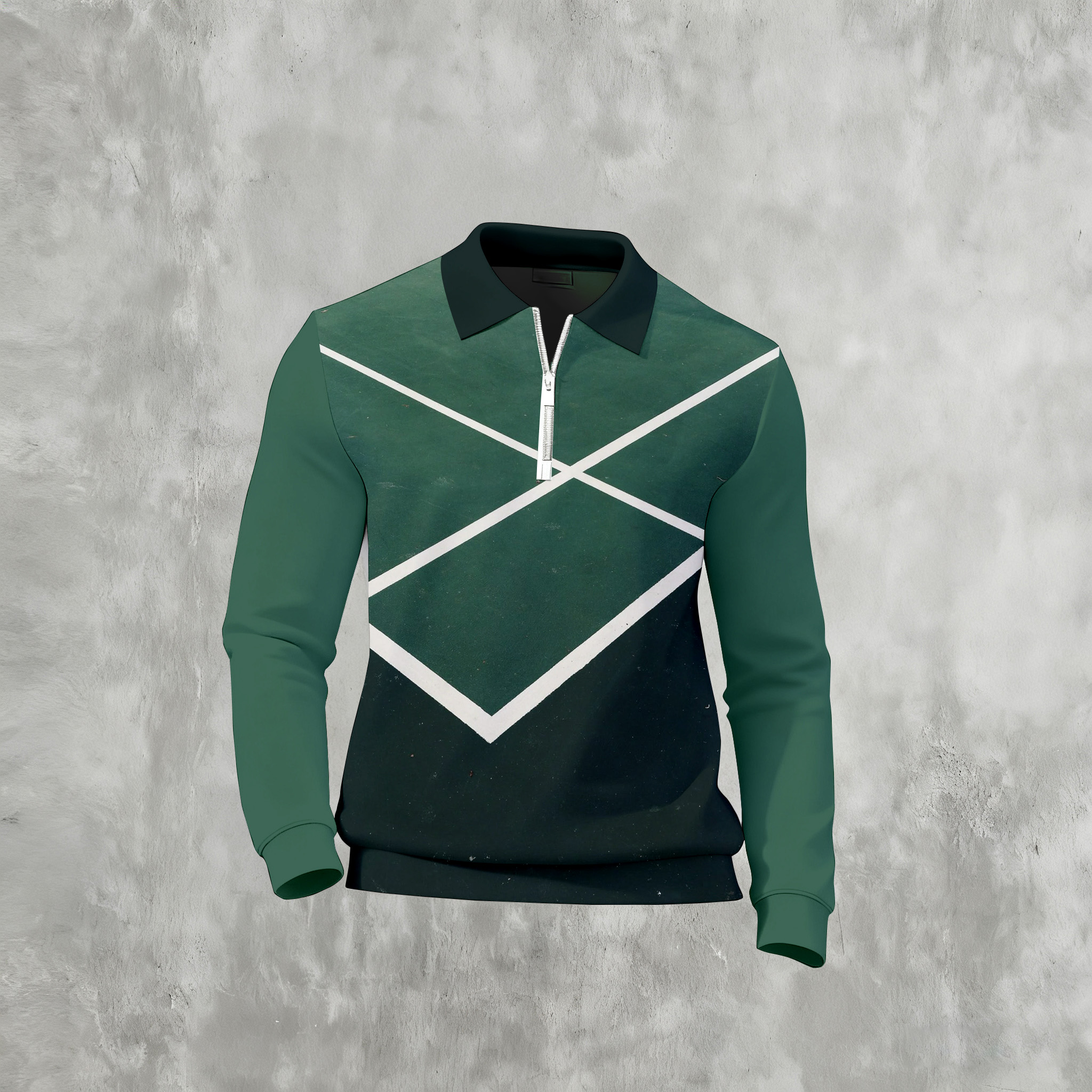 Men's Casual Color Matching Printed Long Sleeves Polo Shirts