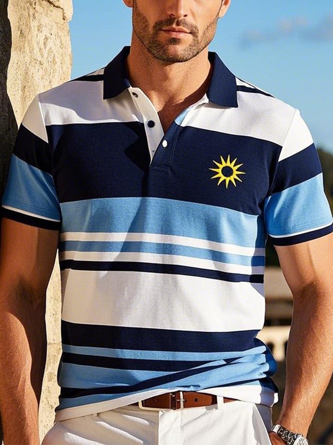 Men's Casual Embroidered Short-Sleeved Polo Shirt