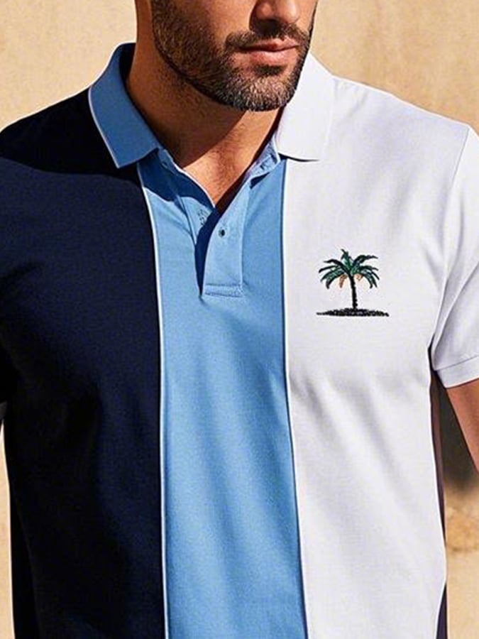 Men's Casual Palm Tree Embroidered Short-Sleeved Polo Shirt