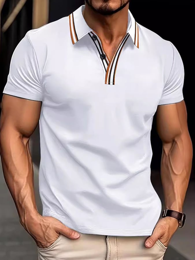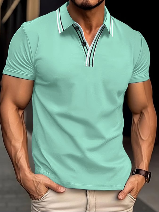 Men's Classic Casual Business Fashion Color Block Polo Shirt