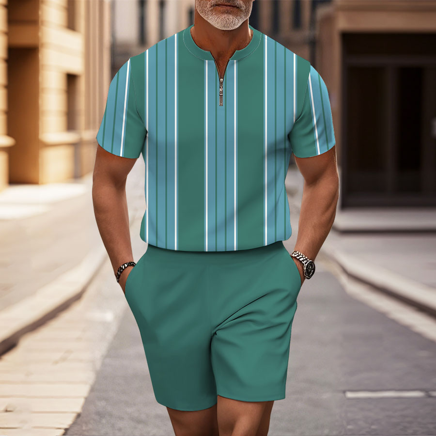 Men's Fashion Casual Round-Neck Geometric Printed Short-Sleeved Two-Piece Set