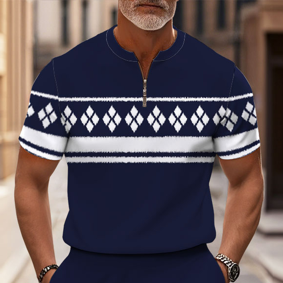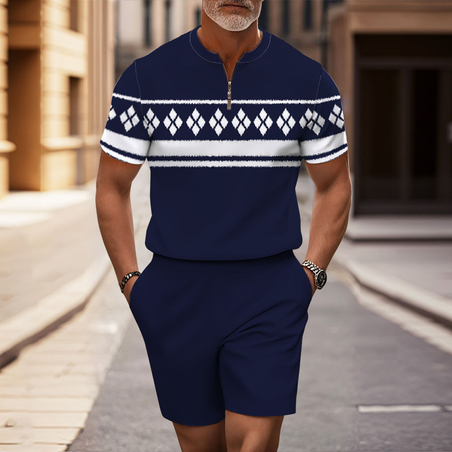 Men's Fashion Casual Round-Neck Geometric Printed Short-Sleeved Two-Piece Set