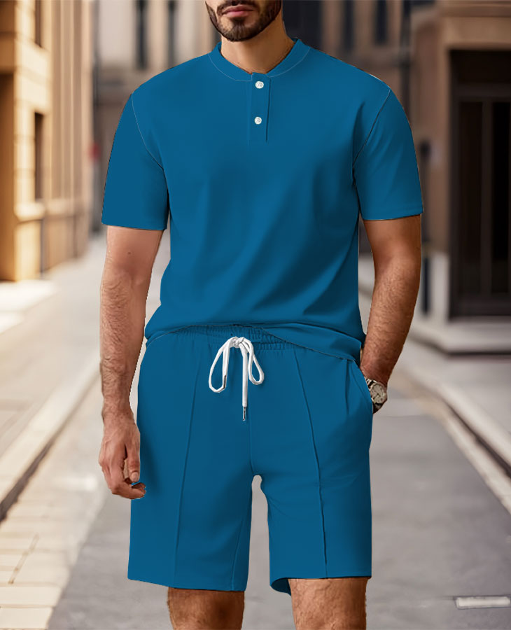 Men's Fashion Casual Round-Neck Solid Color Short-Sleeved Two-Piece Set