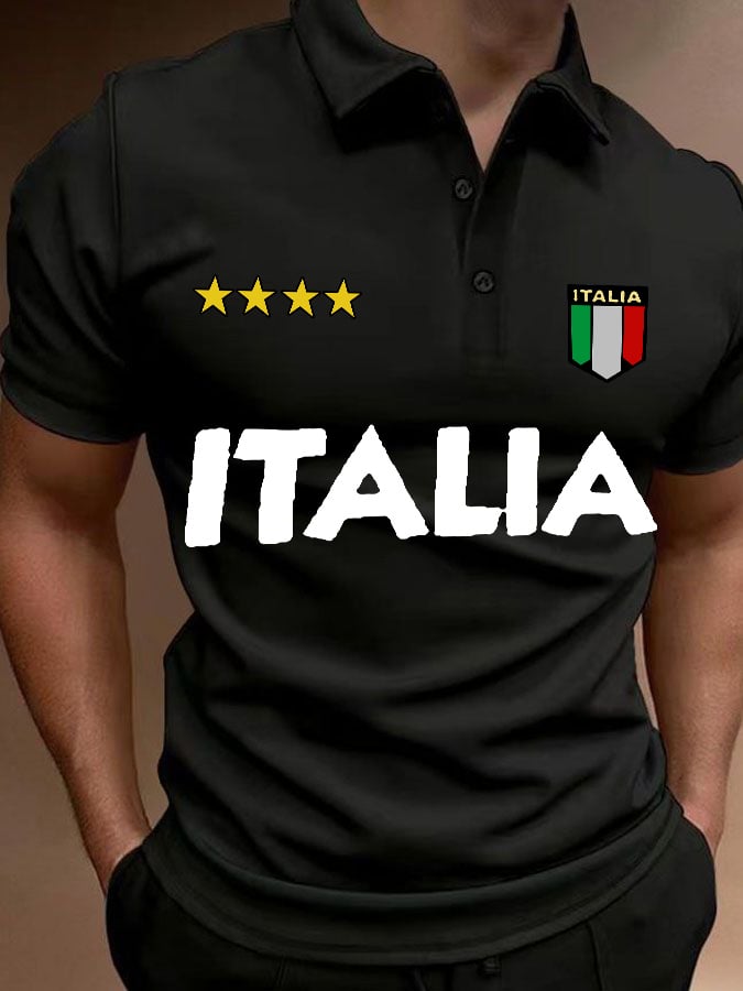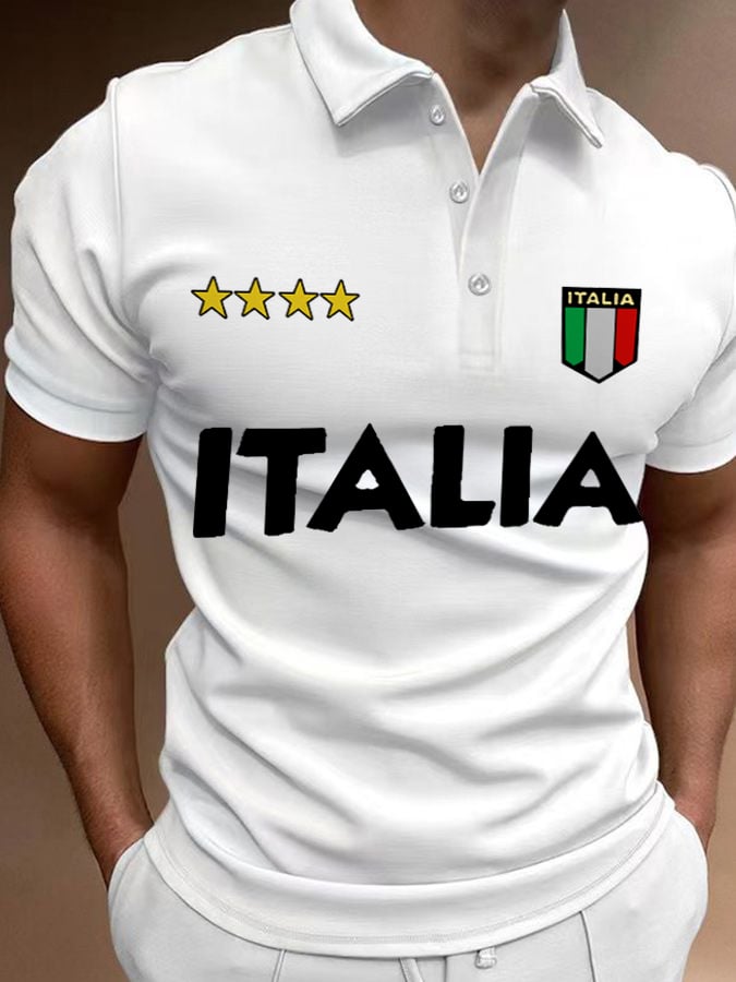 Men's Italy Travel Color Block Print Polo Shirt Tops