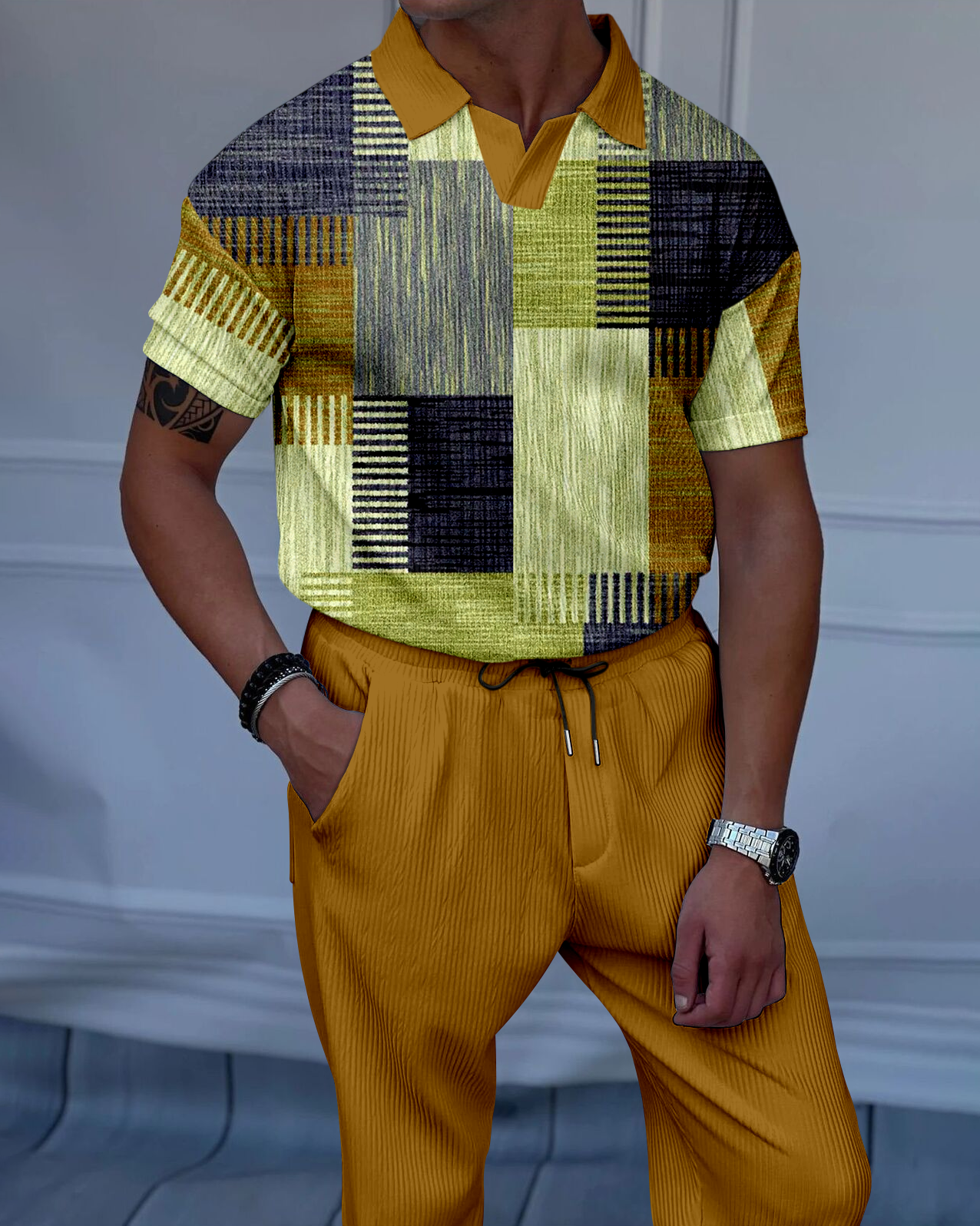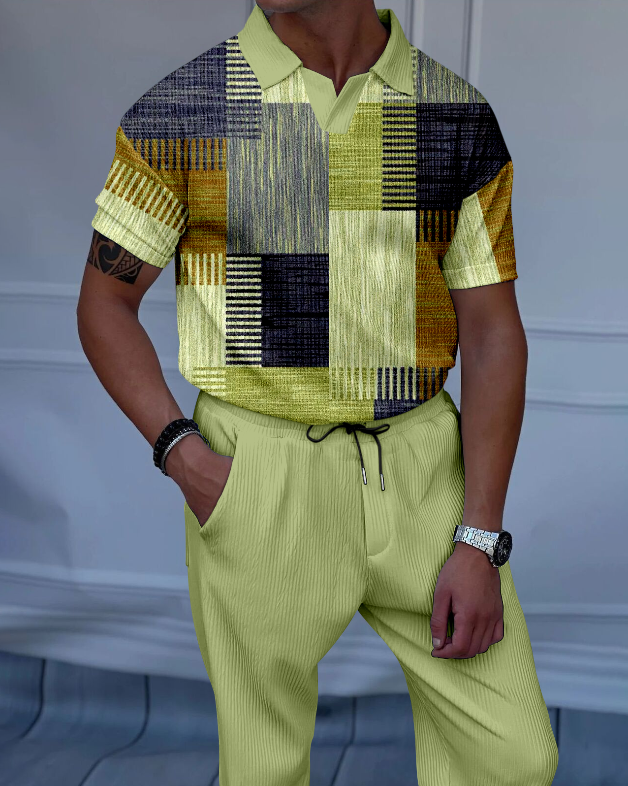 Men's Luxury Casual Textured Polo Short Sleeve Suit - 039