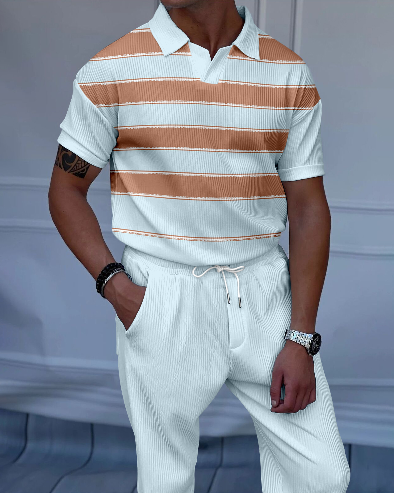 Men's Luxury Casual Textured Polo Short Sleeve Suit - 047