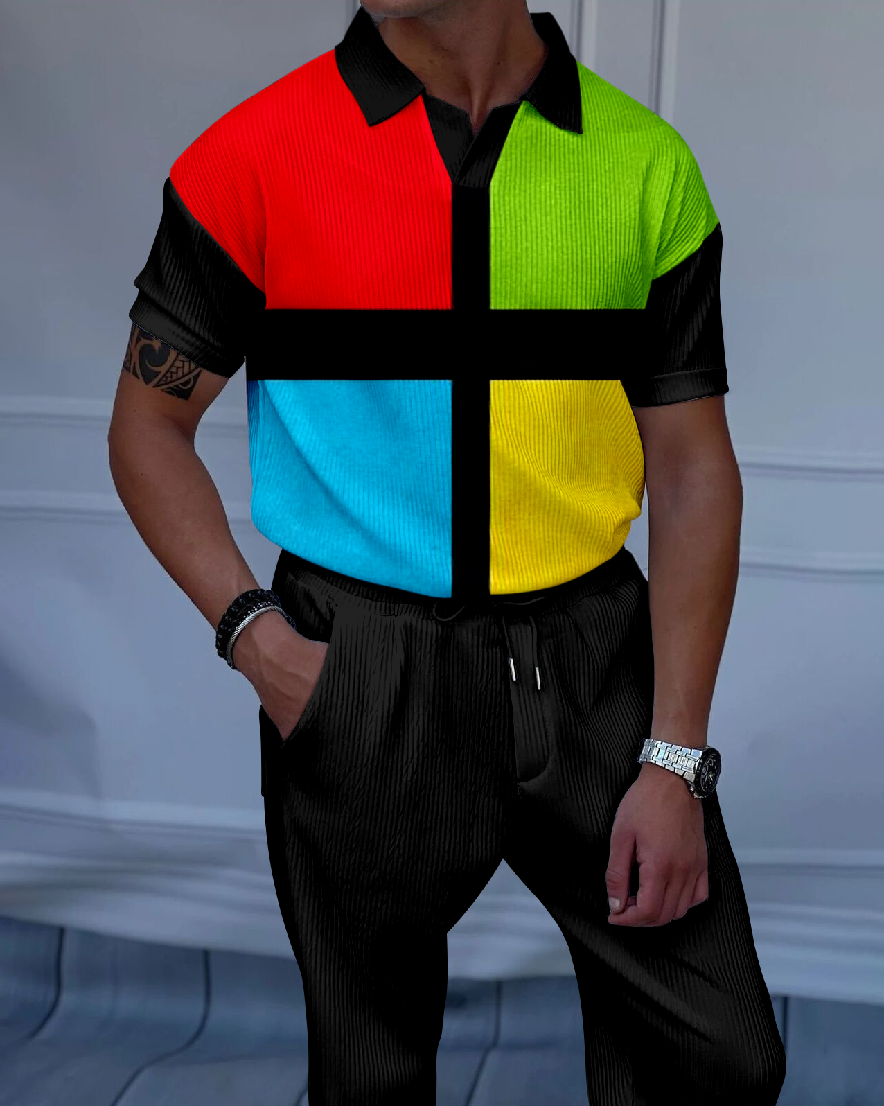 Men's Luxury Casual Textured Polo Short Sleeve Suit - 066