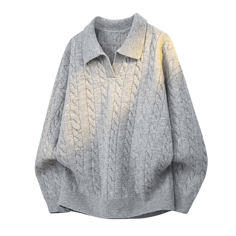 Men's Solid Color Long-Sleeve Knitted Polo Sweater (Runs Small | Size Up 1 Size)