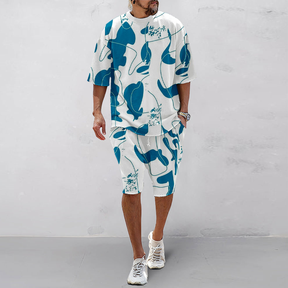 Men's Styles Casual Color Matching Printed Short-Sleeved Two-Piece Set