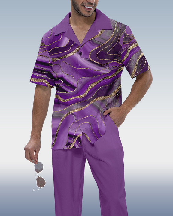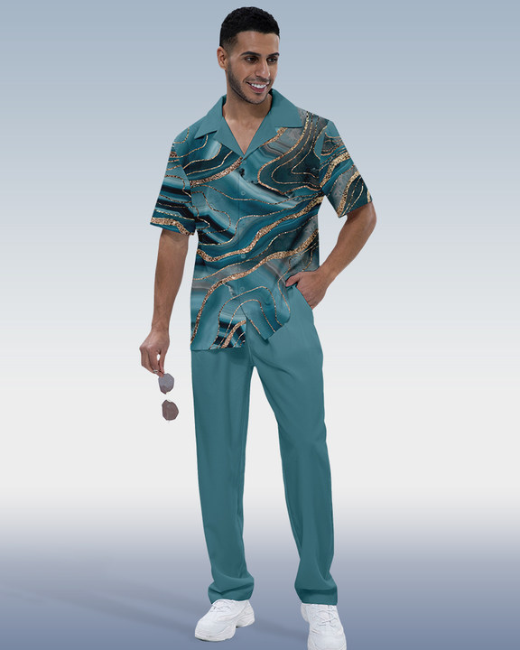 Suitmens Men's Ombre Print Short Sleeve Shirt Walking Set 4 Colors 370