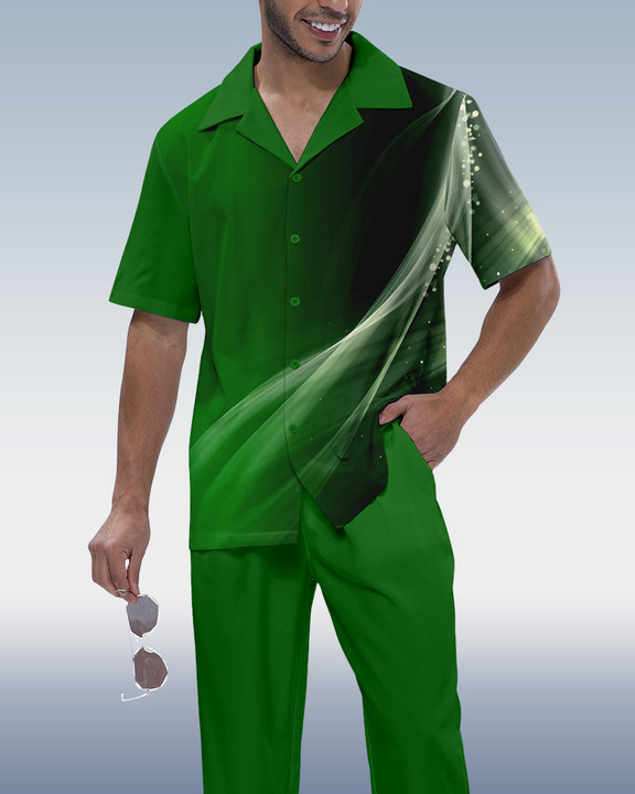 Suitmens Men's Ombre Print Short Sleeve Shirt Walking Set 507