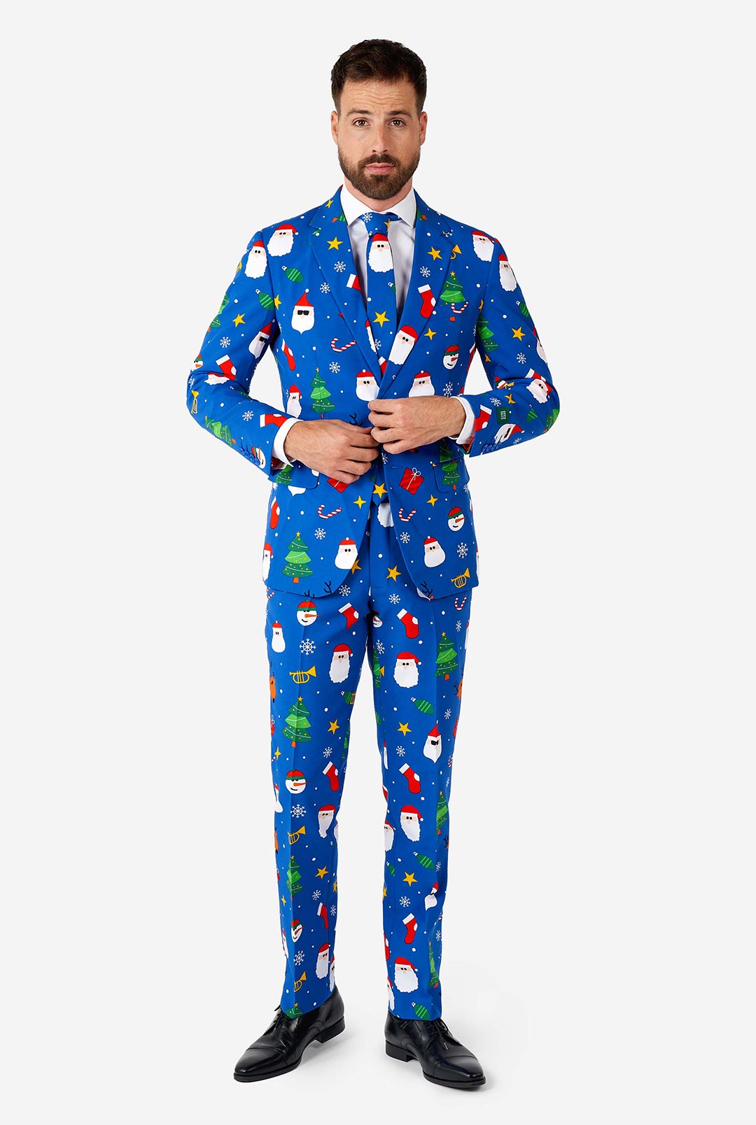 Christmas is the gift that keeps on giving, every year. If you are in need of a festive look for the holidays, than seek no further than the blue Festivity Christmas suit. It has Santa, reindeer, Christmas trees and glittering stars It is the most festive look you've ever had and will put you firmly on Santa's 'good'-list as a yearly reward.