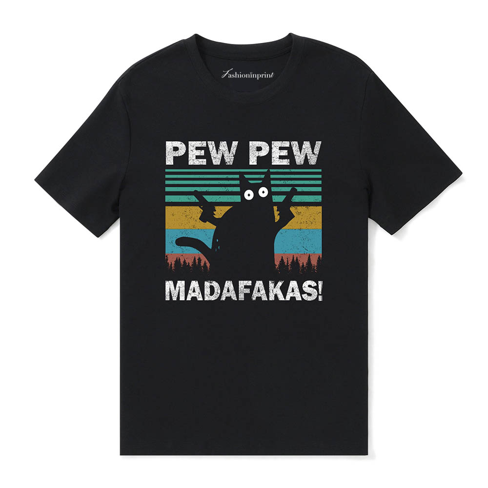Hawaiian Tee For Men Pew Pew Madafakas Cat Tee Crew Neck 100% Cotton - BLACK Pew Pew Madafakas Cat - Black