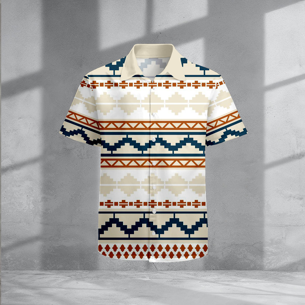Men's Casual Beige & Multi Color Matching Ethnic Print Short-Sleeve Shirt