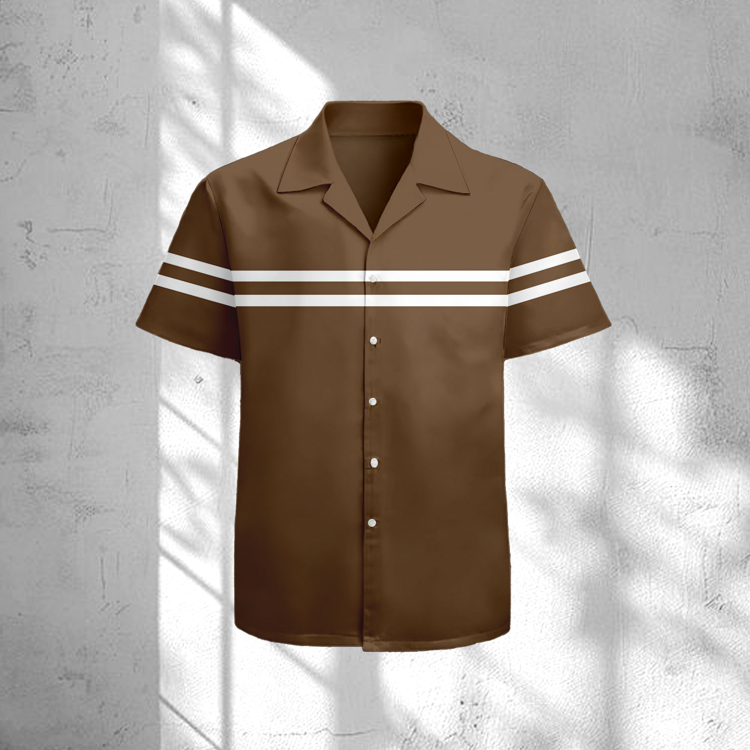 Men's Casual Coffee & White Color Matching Striped Print Short-Sleeve Shirt