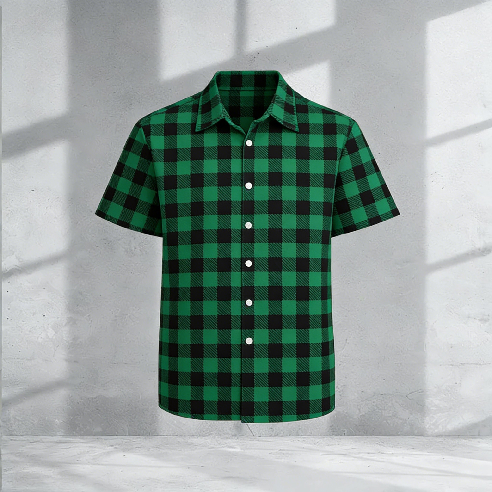 Men's Casual Green & Black Color Matching Checked Printed Shirt