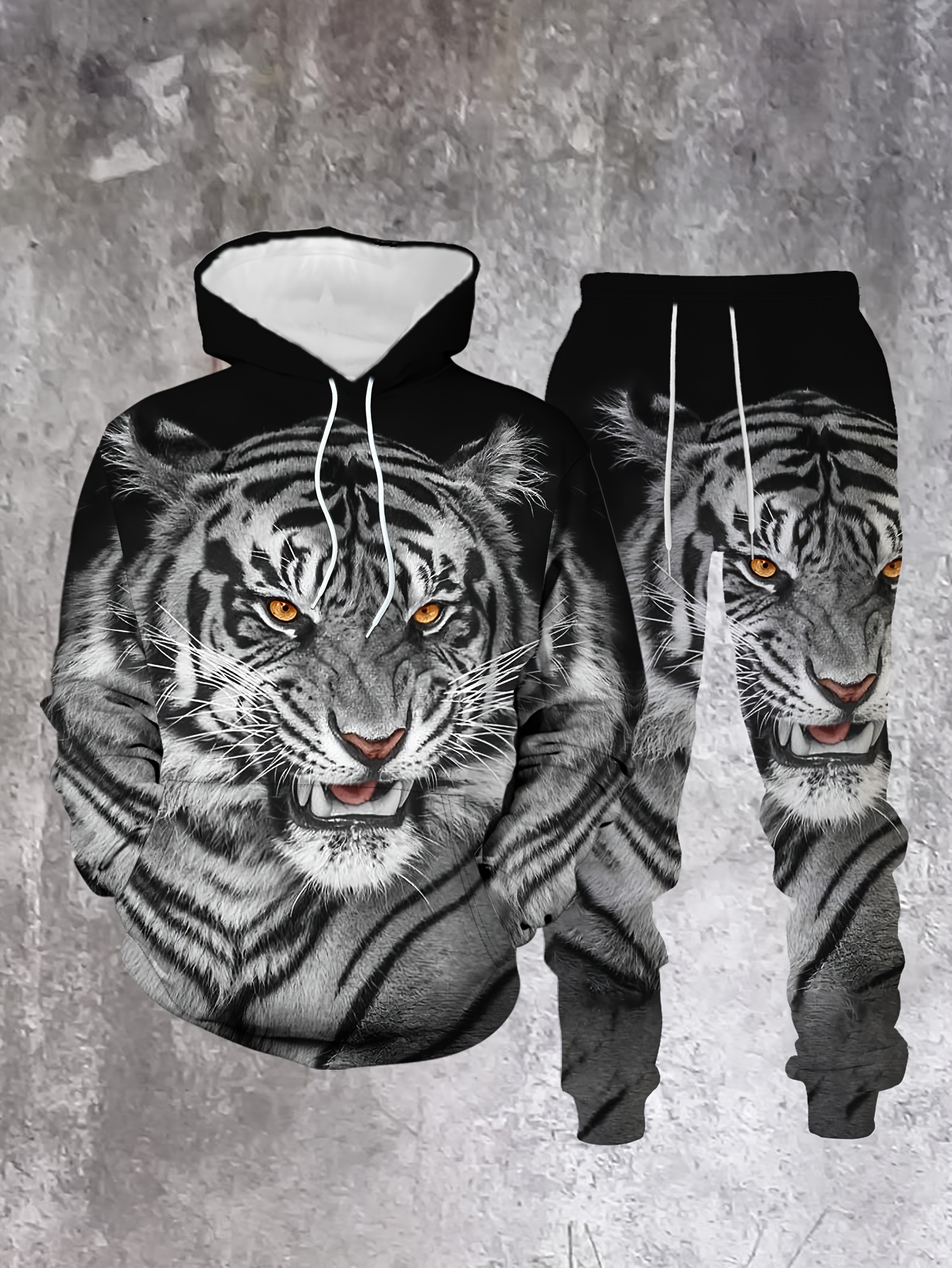 Men's Casual Color "Tiger" Printed Hoodies Long Sleeved Sweatshirts & Sweatpants Two-Piece Set