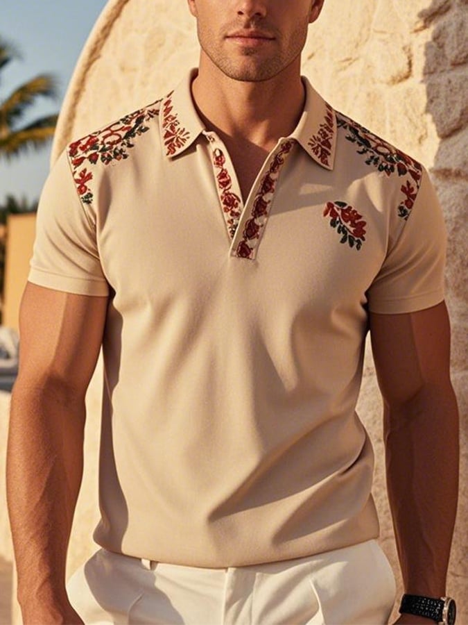 Men's Casual Embroidered Short Sleeve Polo Shirt