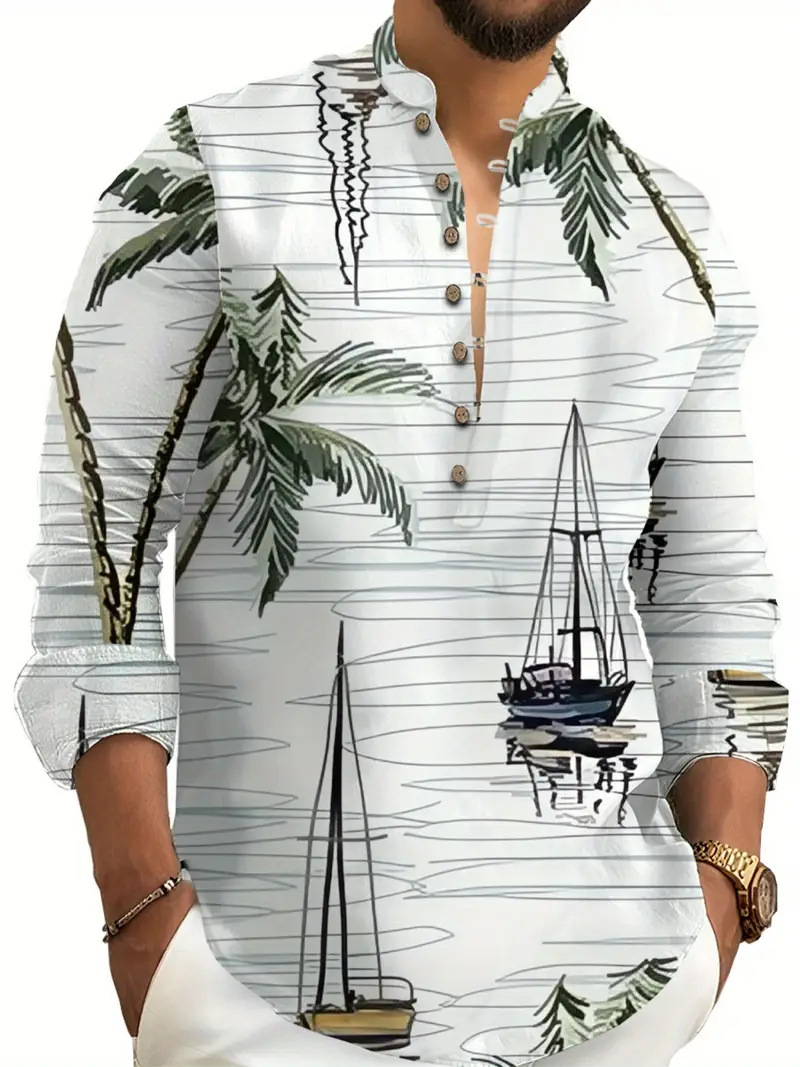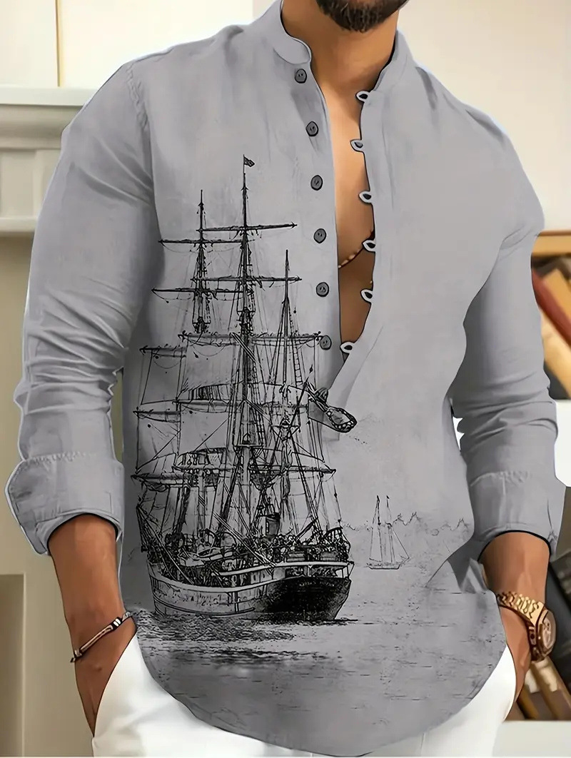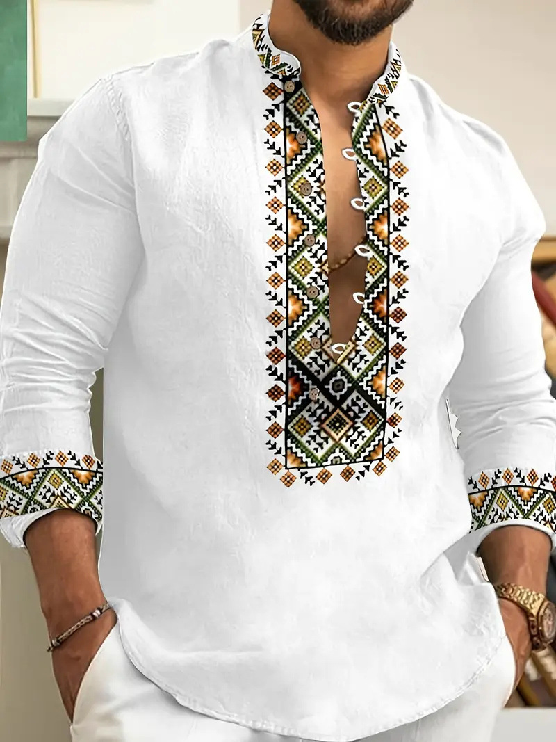 Men's Casual Ethnic Style Stand Collar Long Sleeved Shirt