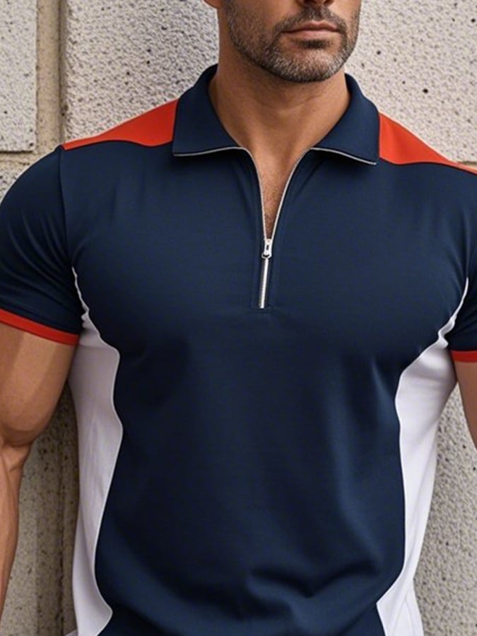 Men's Casual Fashion Color Block Short Sleeve T-Shirt