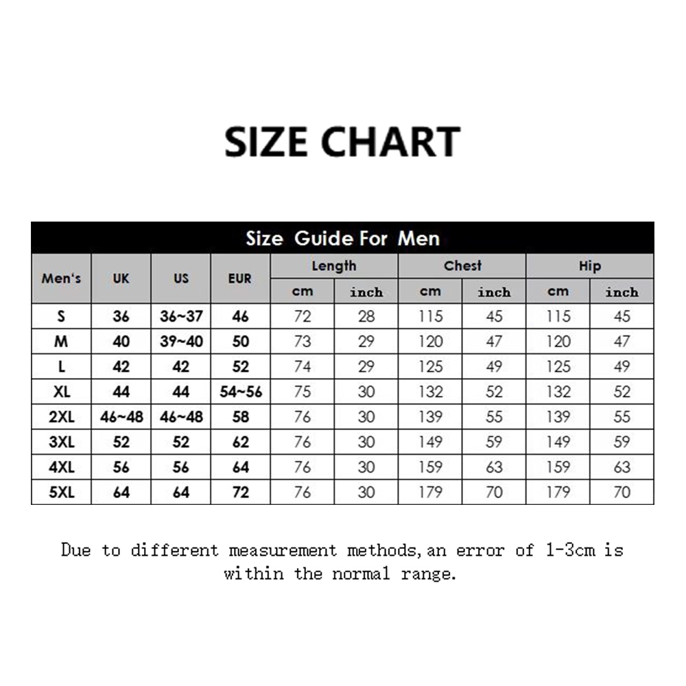 This size is the standard size for thin body types. If you want a loose fit, it is recommended to choose a larger size. If you have a big belly, it is recommended to choose two sizes larger. If the size is not suitable, we support free exchange.