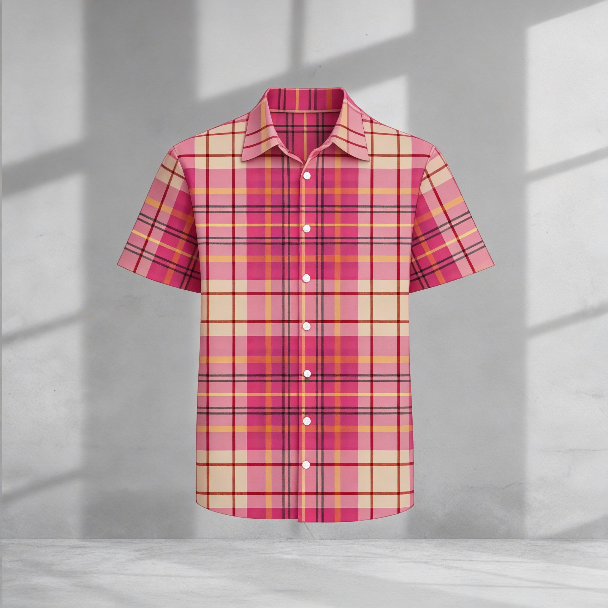 Men's Casual Hot Pink Color Matching Checked Printed Shirt